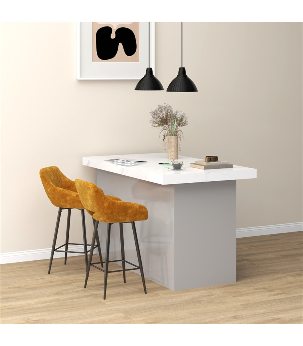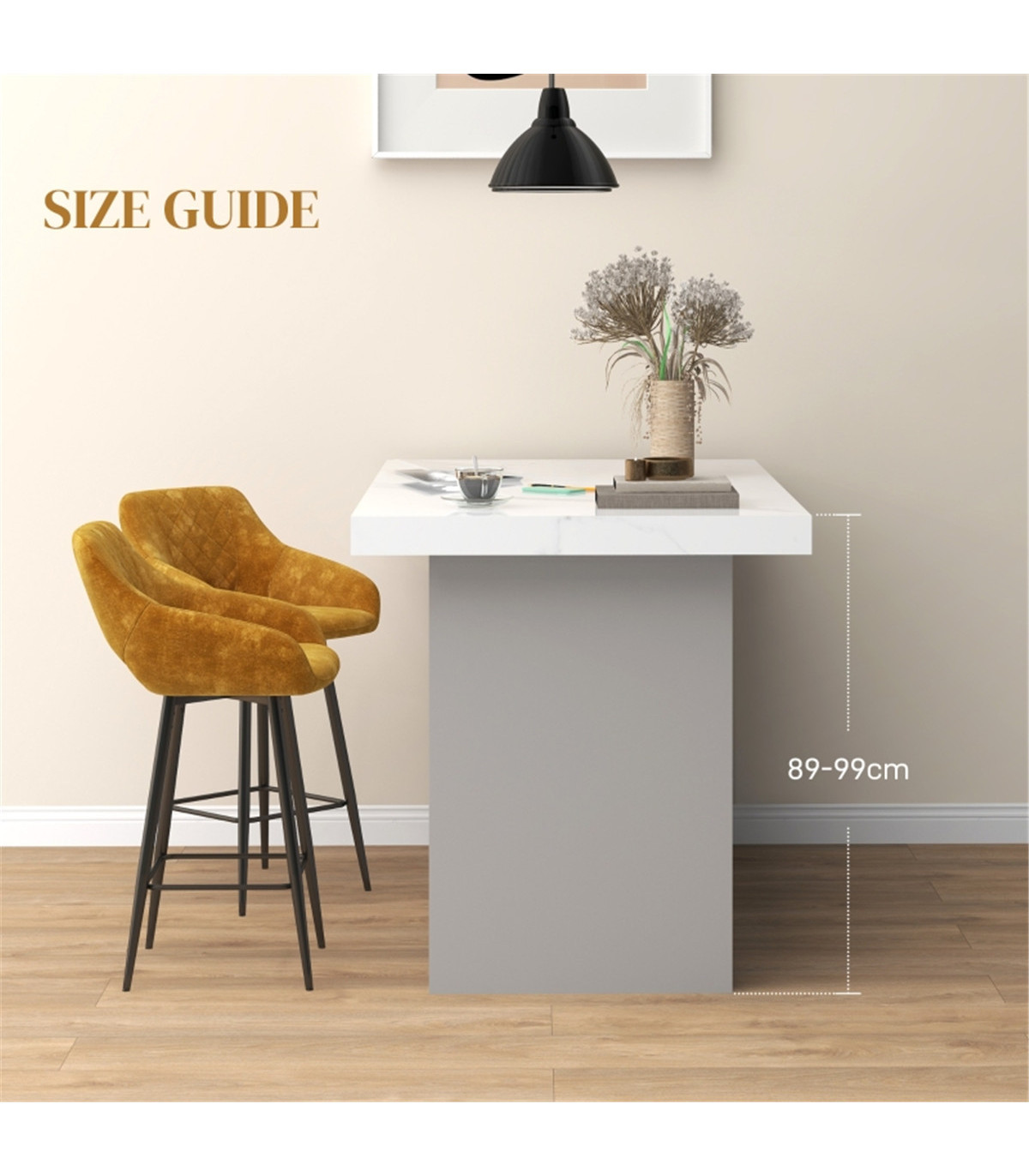 - Counter height is suitable for dining spots, tables and kitchen islands between 89-99cm