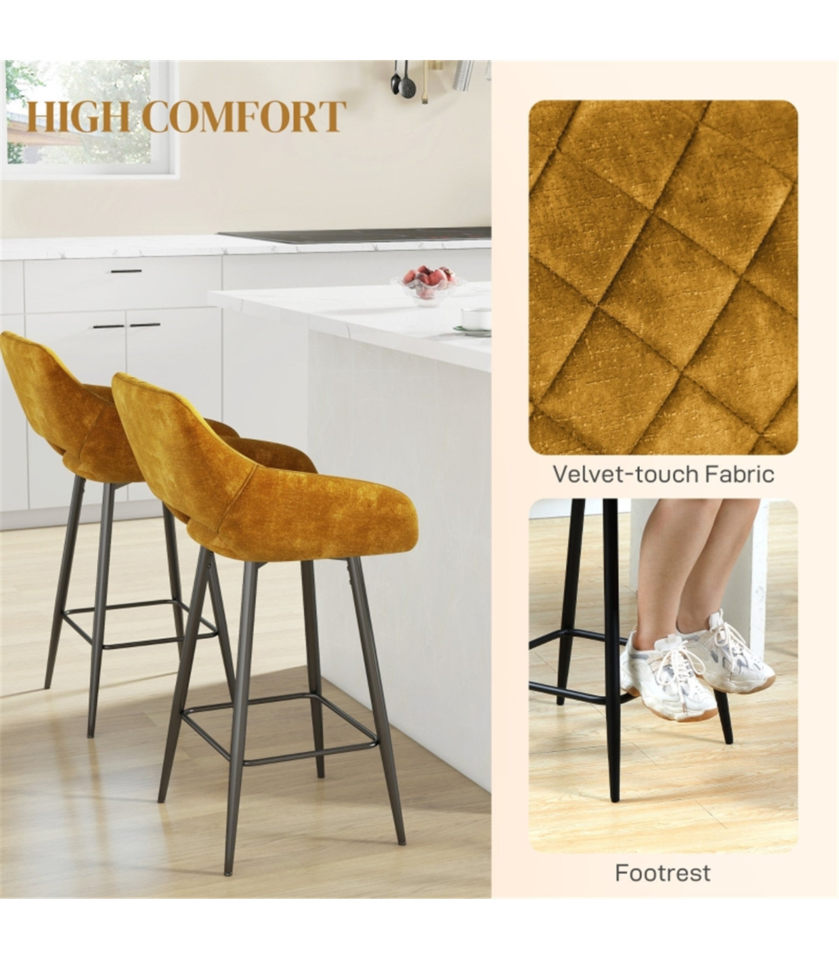 - Beautiful velvet-feel upholstery, in a beautiful tone