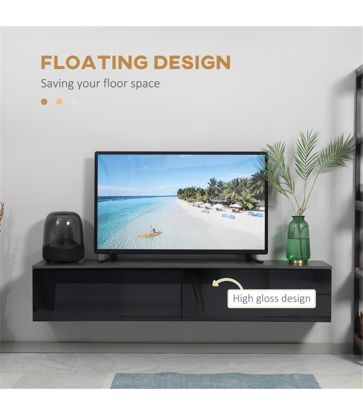 - Wall-mounted design - floating TV stand takes up no floor space