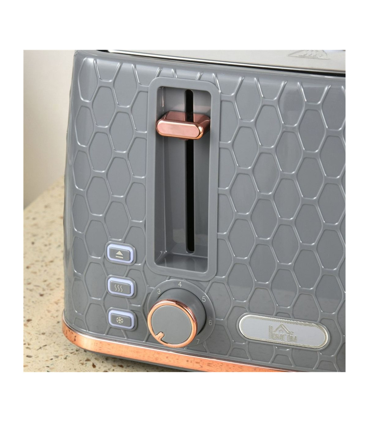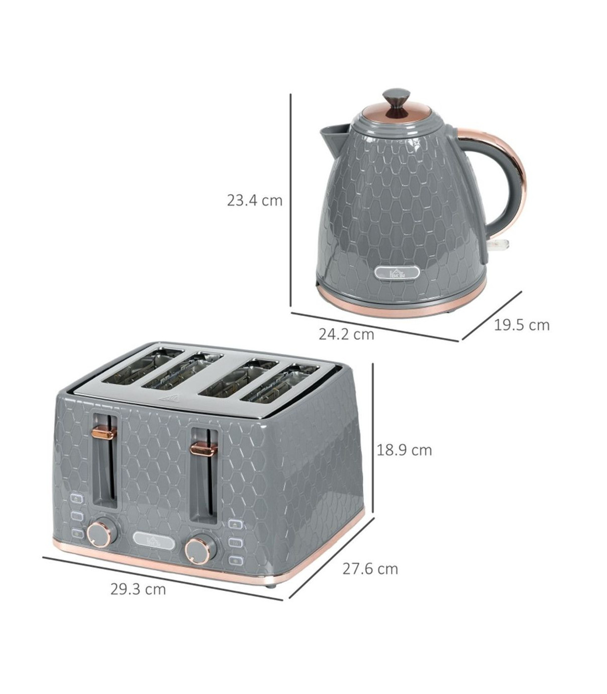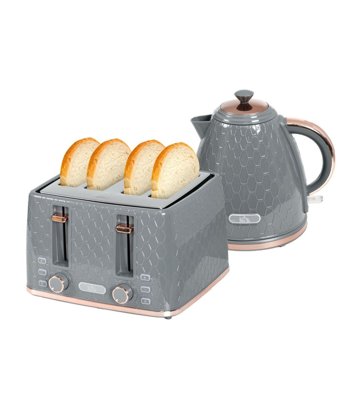 - 1.7L fast boil kettle and matching four-slice toaster. Stylish honeycomb design