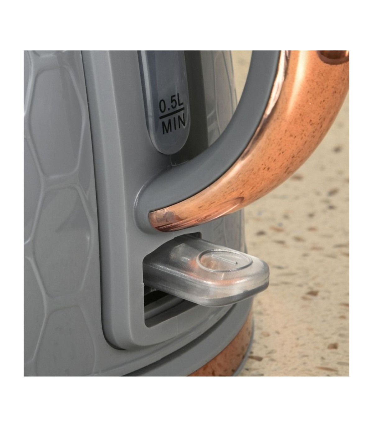 - Kettle has three safety features: automatic shut-off, overheat and dry boil cut-off protection