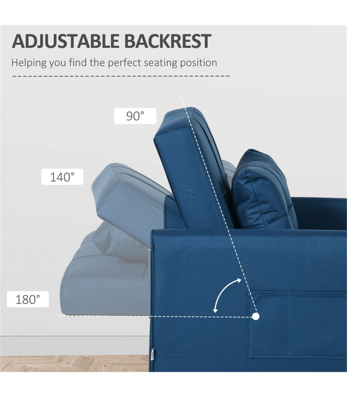- Futon bed with 3-level adjustable back: 90°/140°/180°