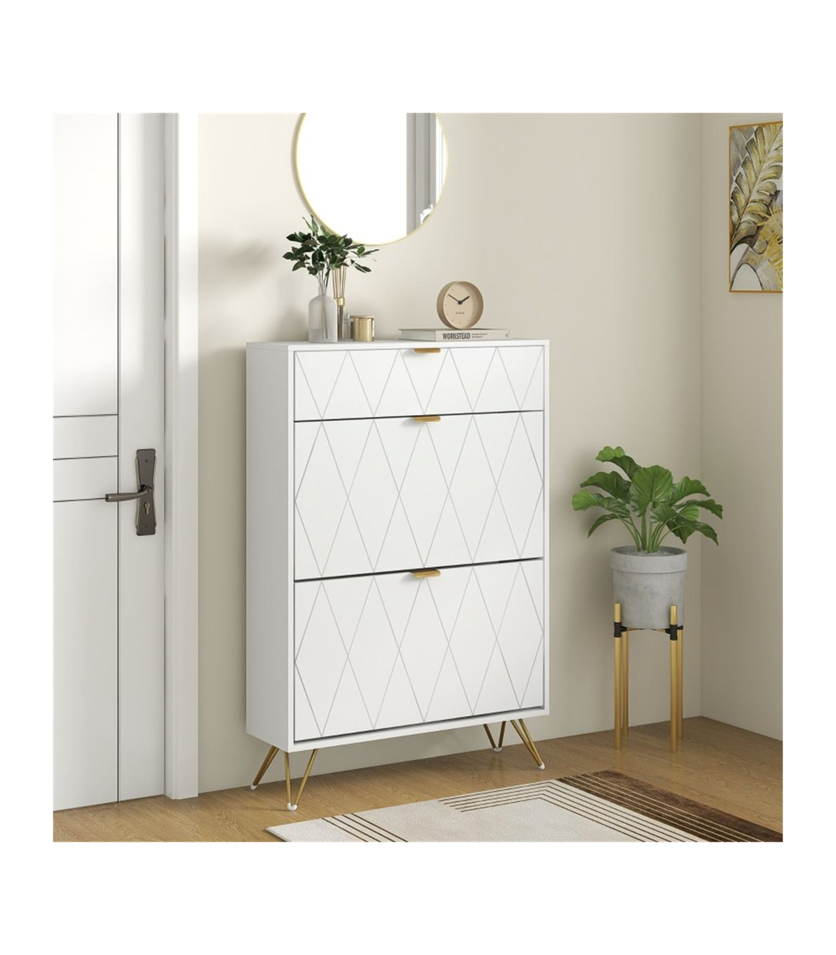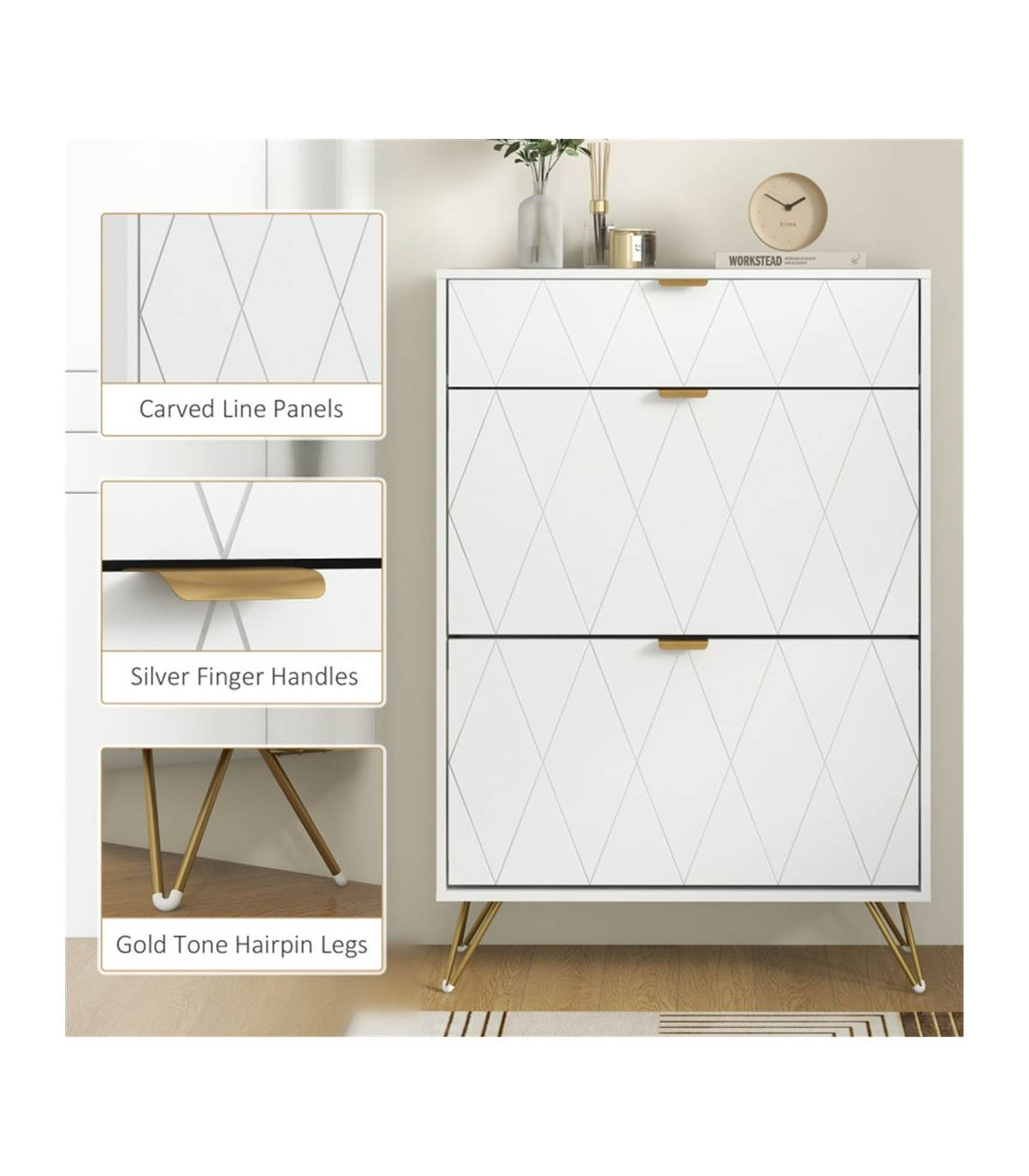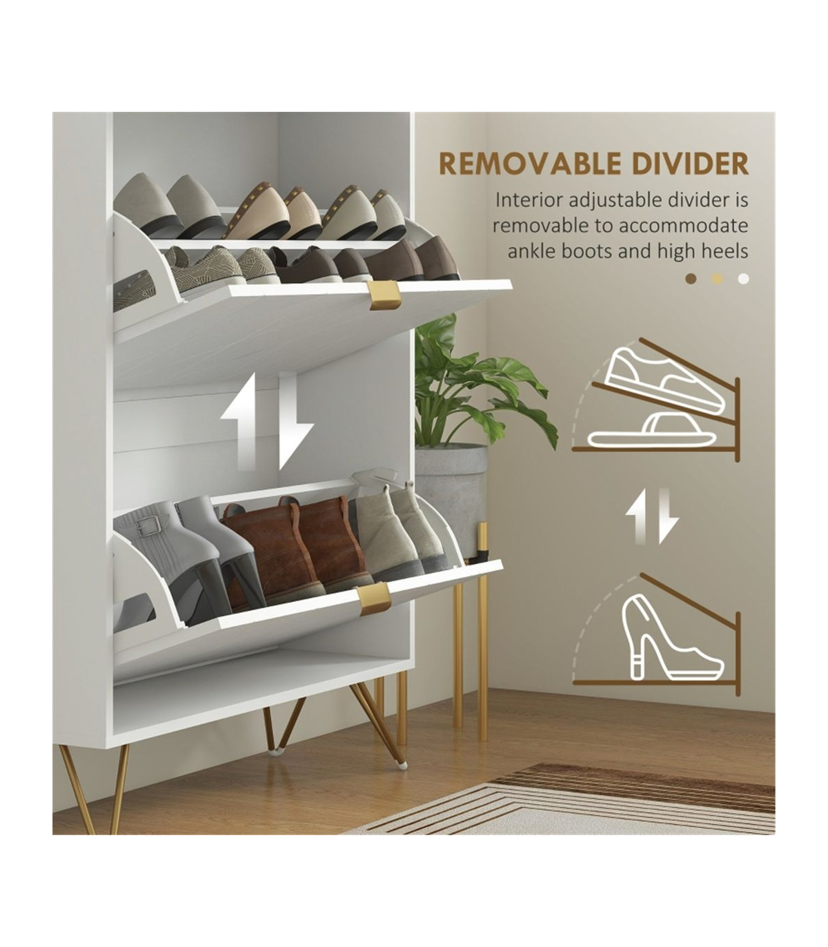 - Two flip drawers store up to 12 shoe pairs. Maximum size: UK 10.5