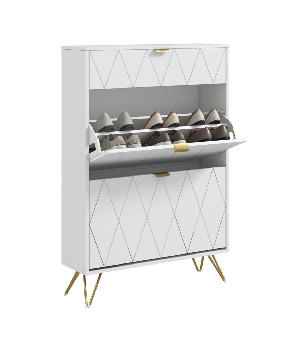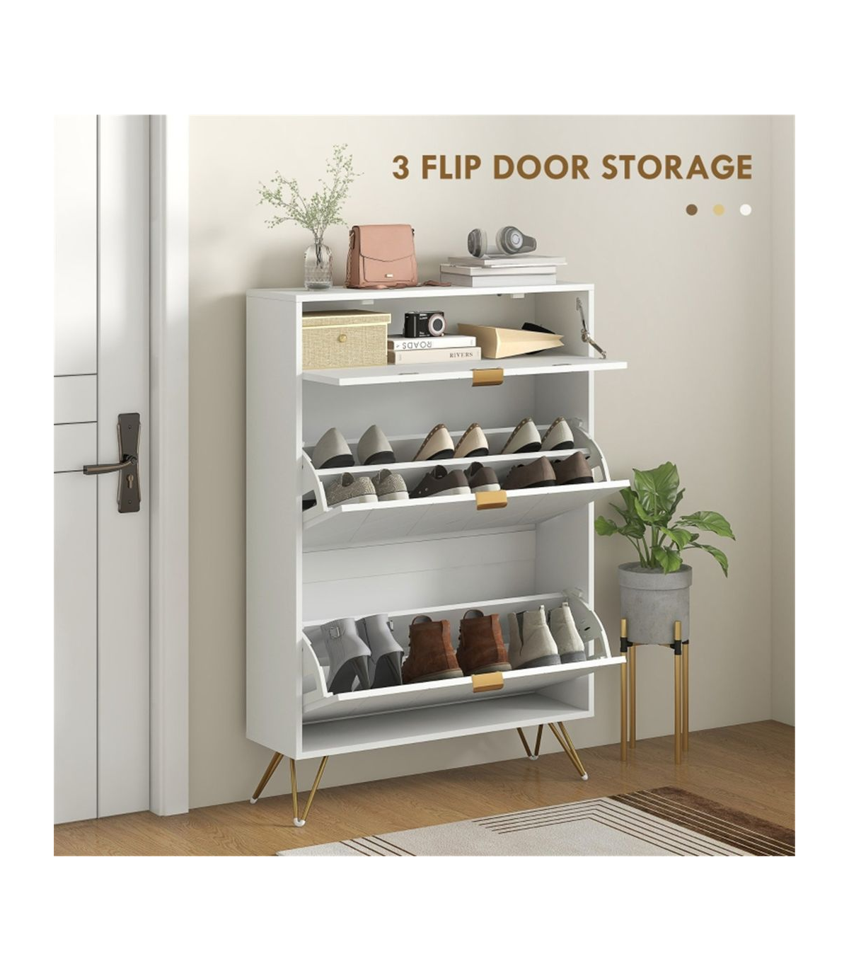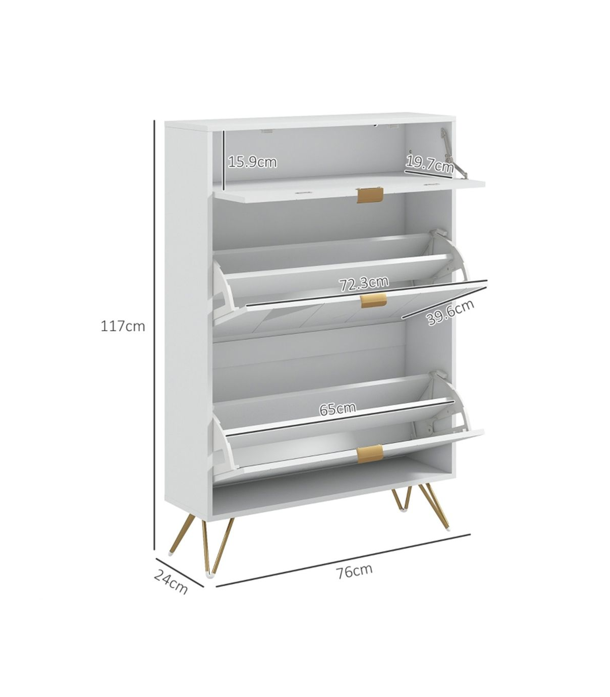 - Two flip drawers store up to 12 shoe pairs. Maximum size: UK 10.5