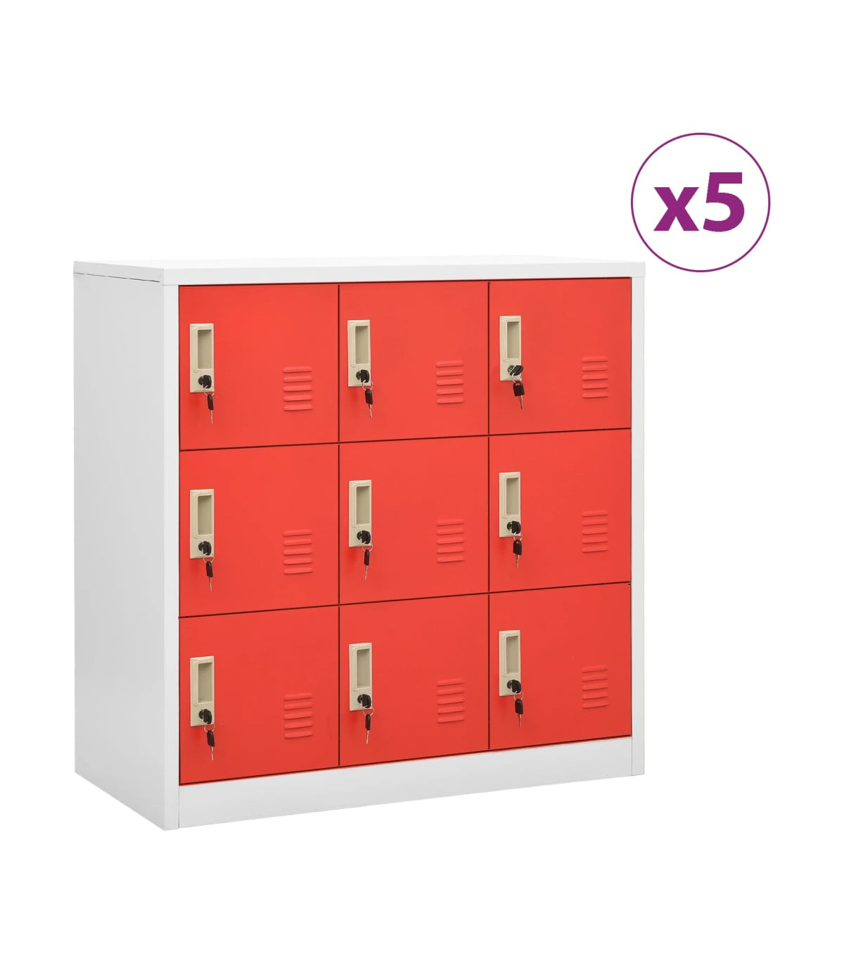 vidaXL Locker Cabinets 5 pcs Light Grey and Red 90x45x92.5 cm Steel