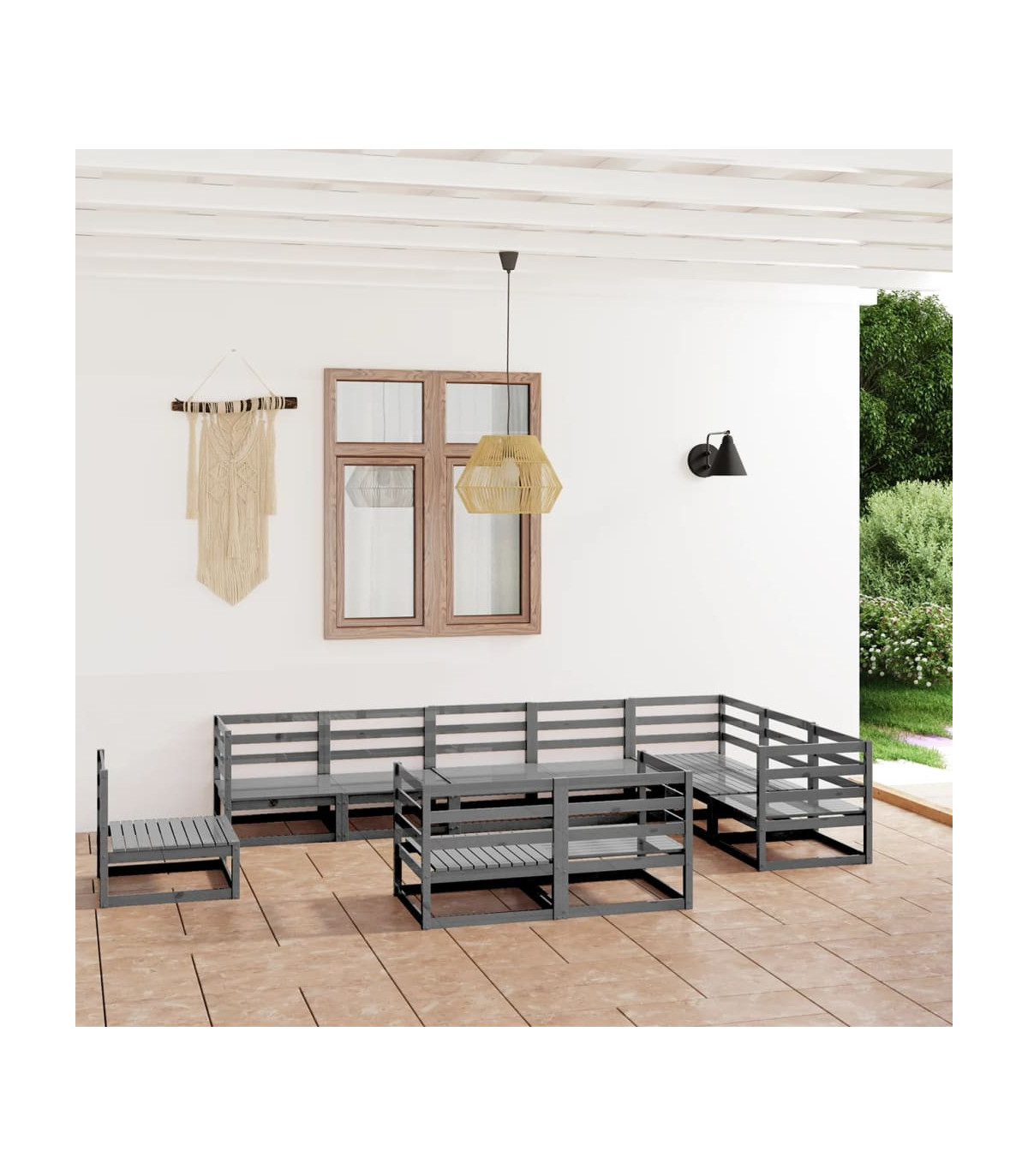 vidaXL 10 Piece Garden Lounge Set Grey Solid Pinewood