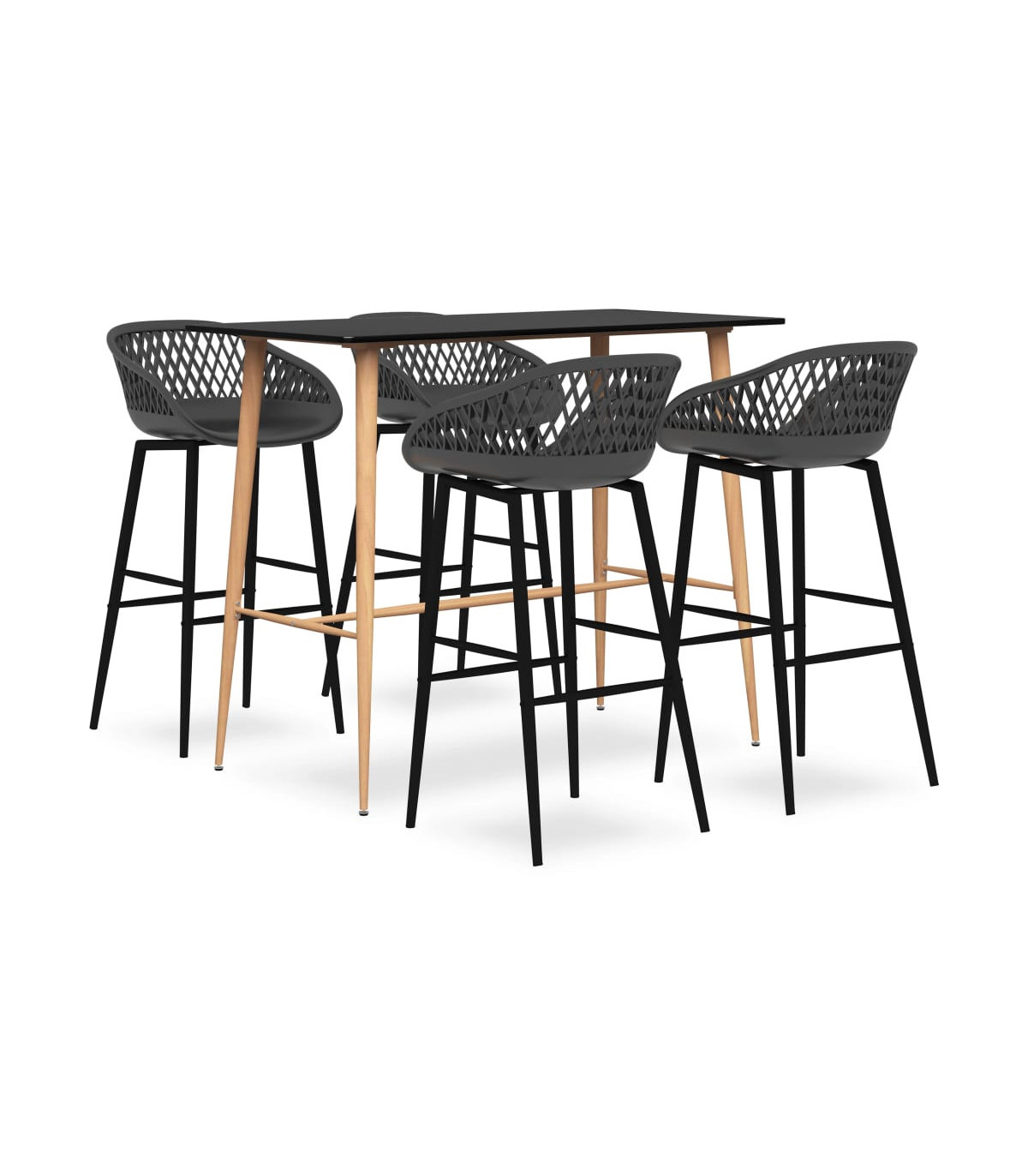Featuring a modern and contemporary design, our bar set is perfect to go with any modern homes, gardens, bars, pubs or restaurants. Its clean and contemporary design will complement any interior decor. Our counter table features a durable MDF tabletop and strong metal legs with wood look. The bar stools have an ergonomically designed seat with integrated low backrest in a mesh look. Made of robust PP and supported by strong powder-coated metal legs, these counter chairs are sturdy and durable.