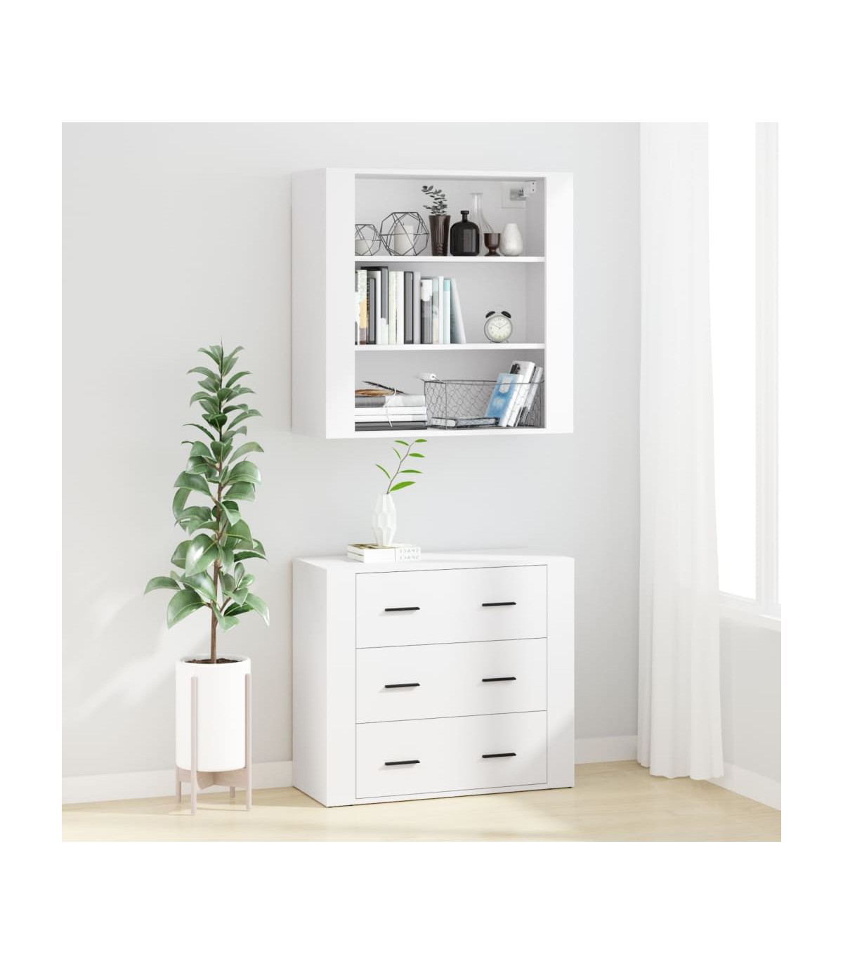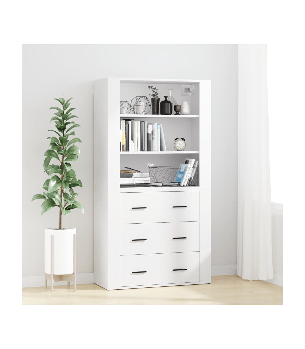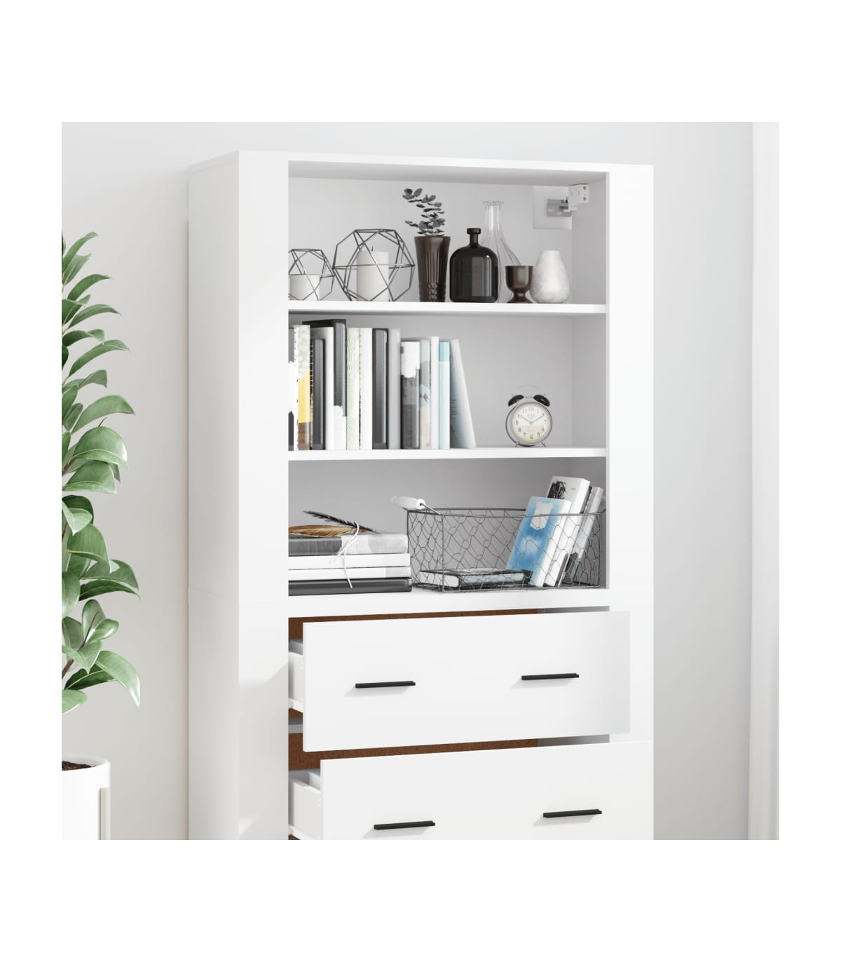 Are you hunting for a stylish highboard? This highboard adds a unique charm to your existing interior! Durable material: The engineered wood is of exceptional quality with a smooth surface and features strength, stability and resistance to moisture.Ample storage space: The sideboard offers ample storage space for keeping your various daily essentials well organised and within easy reach.Wall-mounted function: The storage cabinet can be wall-mounted on the top of the sideboard to create a highboard, which saves floor space. That way, you can maximise your living space and keep the area clean and tidy. Good to know:To make assembly as easy as possible, each product is delivered with a manual.Screws and plugs for inside the wall are not included. We advise to find and use screws and plugs suitable specifically for your walls. If you're not sure, you can consult with a professional. Please read and follow each step of the instructions. Warning:To prevent it being overturned, this product must be used with the provided wall attachment device.