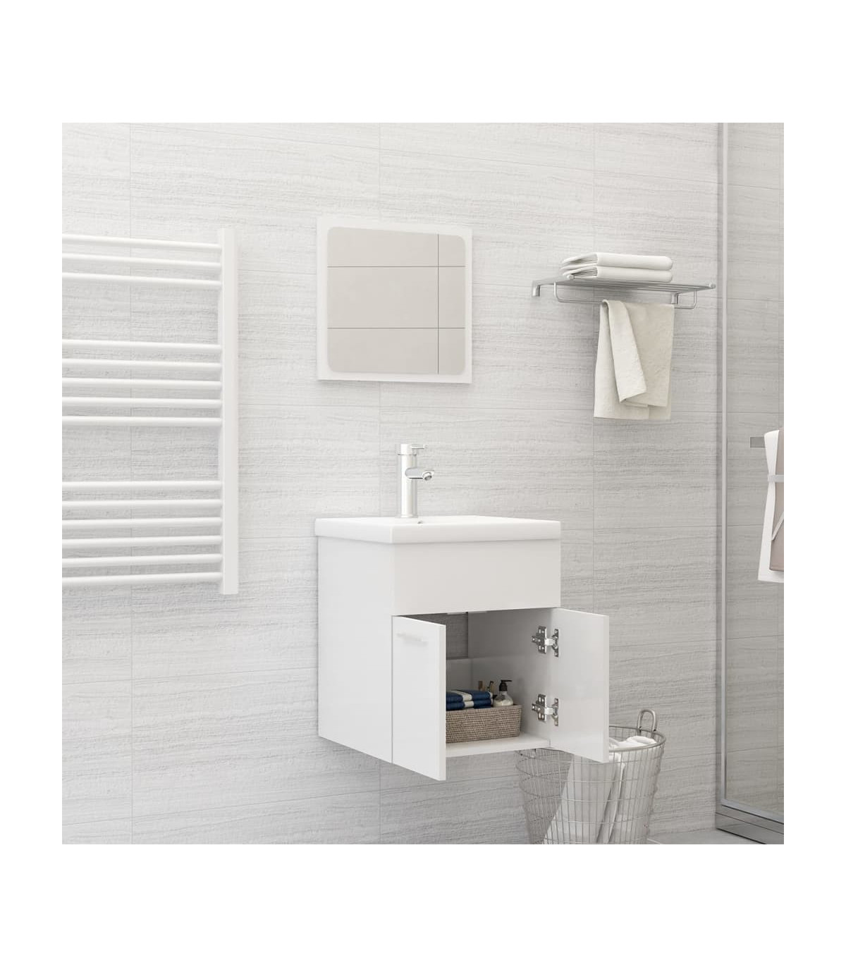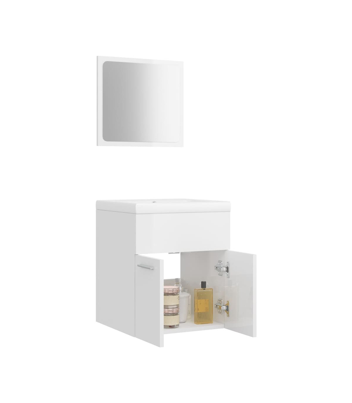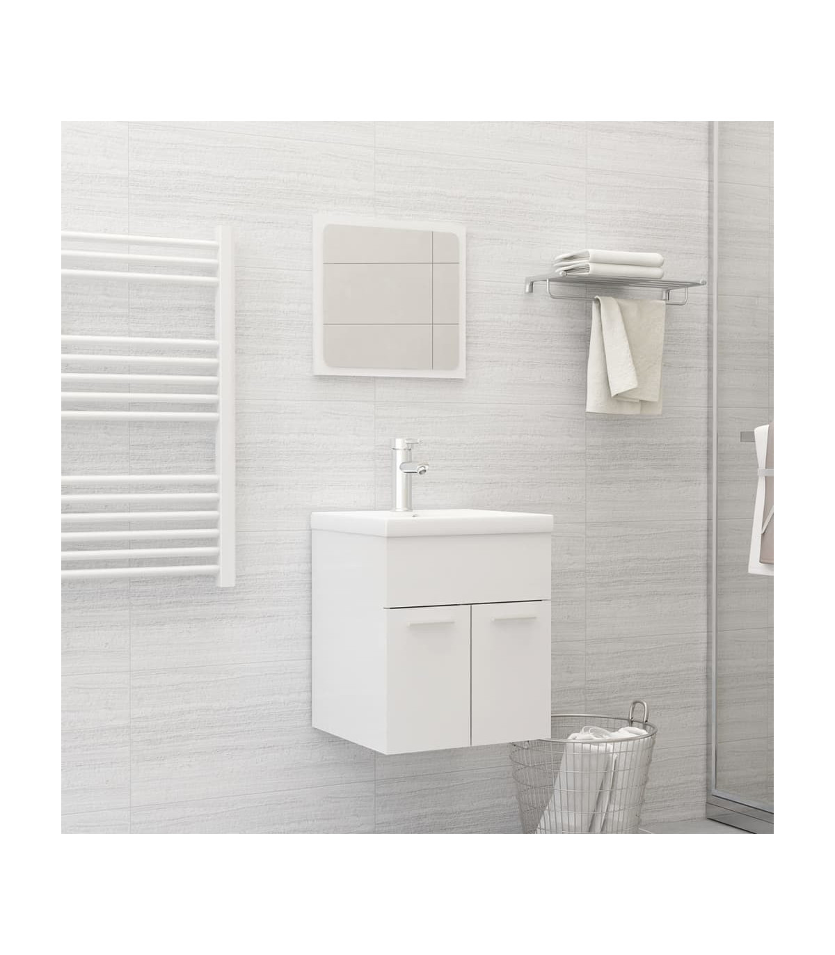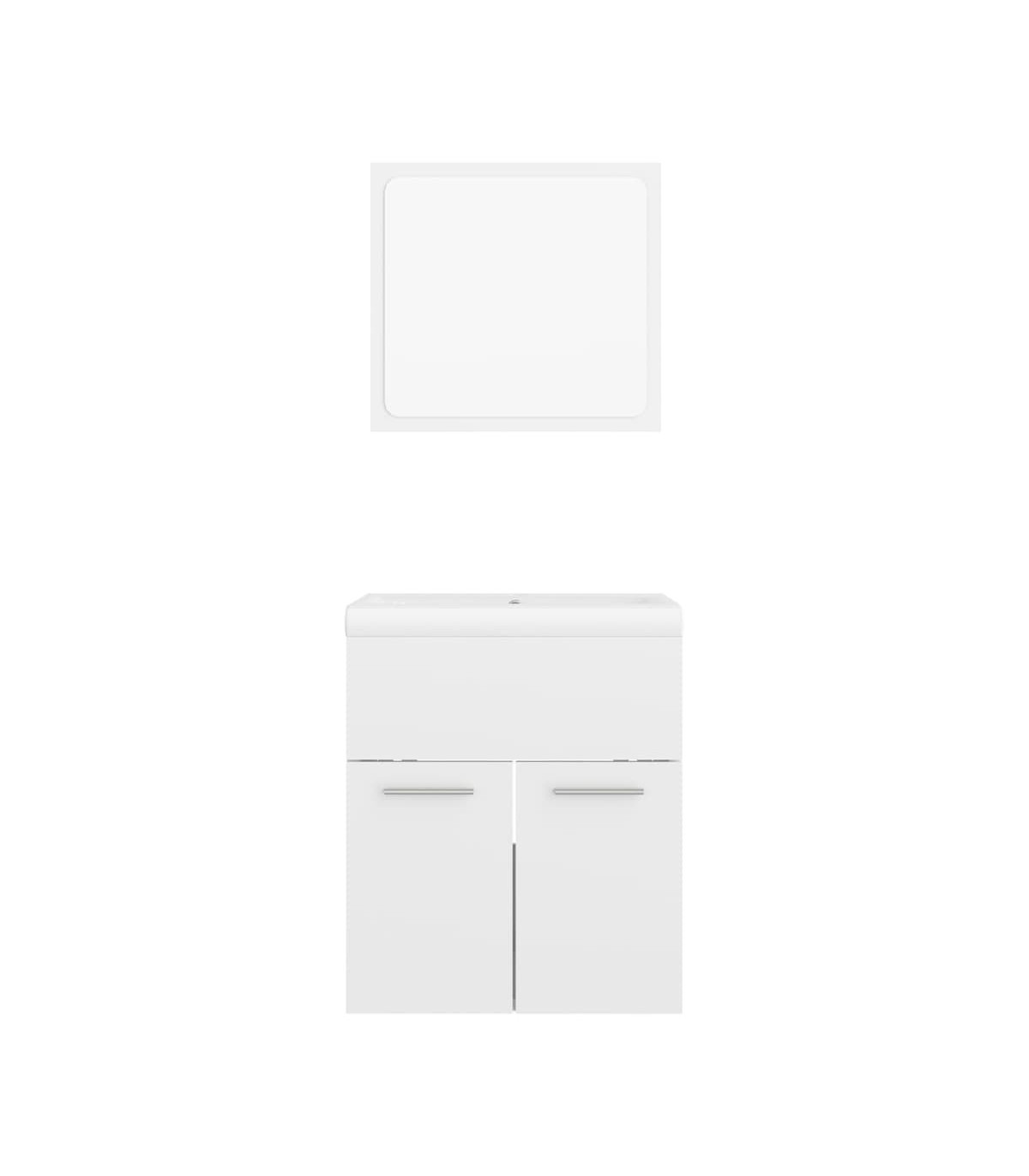 This stylish bathroom furniture set, which consists of a sink cabinet, a built-in basin, and a mirror, is a perfect match for your bathroom or washroom with a striking, tidy appearance. The sink cabinet is made of engineered wood, making it sturdy and stable. The cabinet has 1 compartment and 2 doors, offering ample space to store items. It fits perfectly under the sink and makes bathroom storage quite convenient. Made of ceramic, the basin can not only serve as a vessel for daily use but also as an adornment in your living space. Thanks to its trendsetting and contemporary design, this washbasin will definitely suit any decor. An overflow is also equipped to flow water out when it gets too full. Its glazed surface brings itself a modern yet elegant design. The mirror also adds an excellent appearance to your home decor. Additionally, this set is easy to clean with a damp cloth. Please note: The tap and the drain are not included in the delivery.