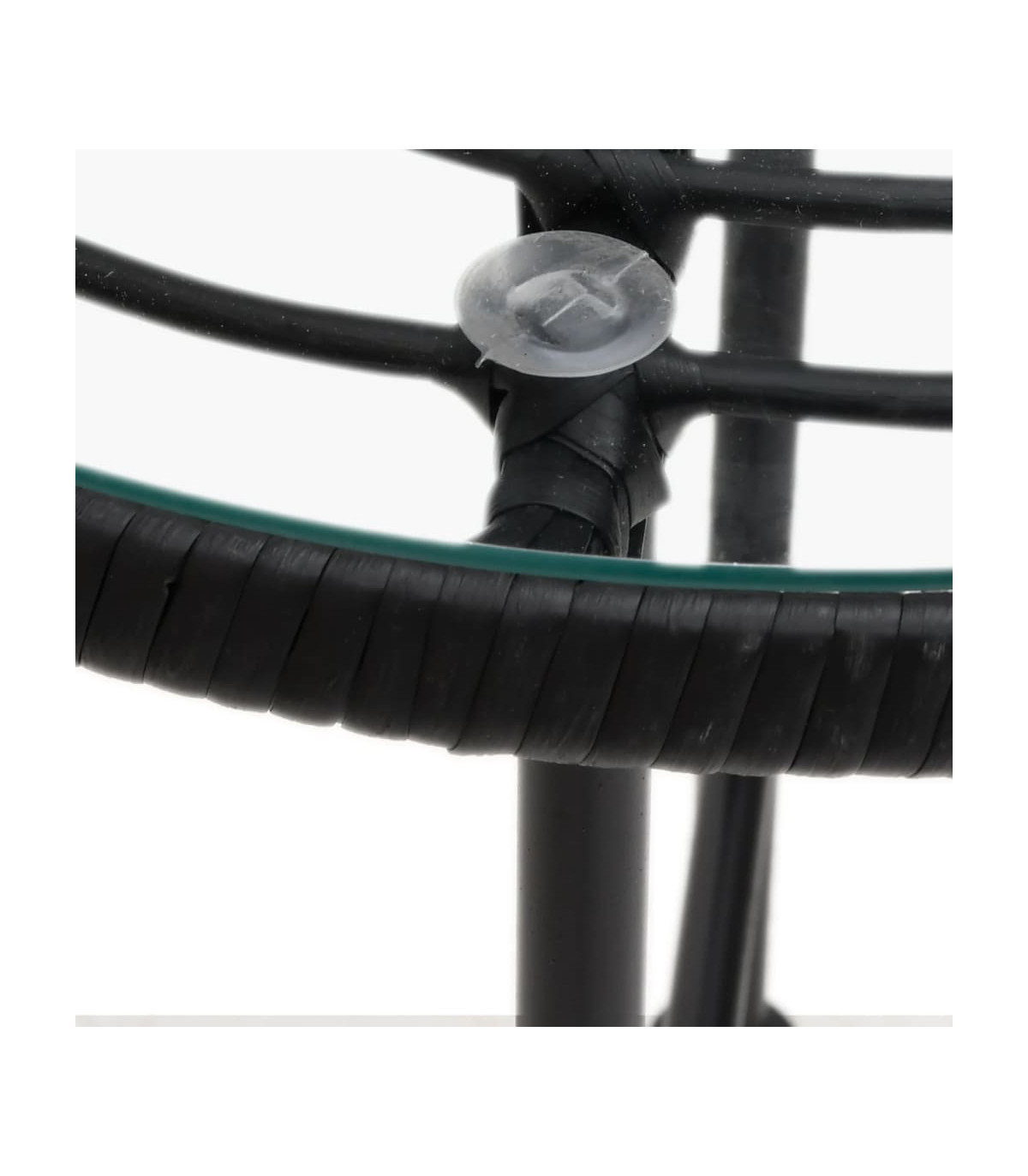 - Material: Steel, tempered glass, polyethylene with a rattan look