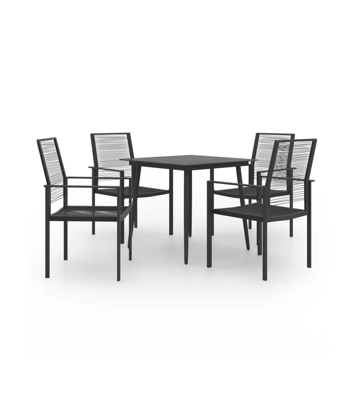 Create a compelling and cohesive aesthetic in your outdoor space with this garden dining set! The dinner table and chairs feature power-coated steel frames, making them sturdy and stable. The glass tabletop also makes it easy to clean and weather resistant. This outdoor table is stable, durable and rust-resistant. Thanks to the water-resistant PVC hollow rattan, the garden chairs are hard-wearing, easy to maintain and suitable for daily outdoor use. Additionally, the backrest also adds extra seating comfort for the chair. Note: In order to extend the life of your outdoor furniture, we recommend you to clean it regularly and do not leave it outdoors without protection unnecessarily.Clean: Use a mild soap solutionStoring: If possible, store in a cool, dry place indoors. If the product is stored outdoors, protect it with a waterproof cover. Wipe and dry the excess water or snow from flat surfaces after a rain or snowfall. Allow sufficient air circulation to avoid moisture-related damage.