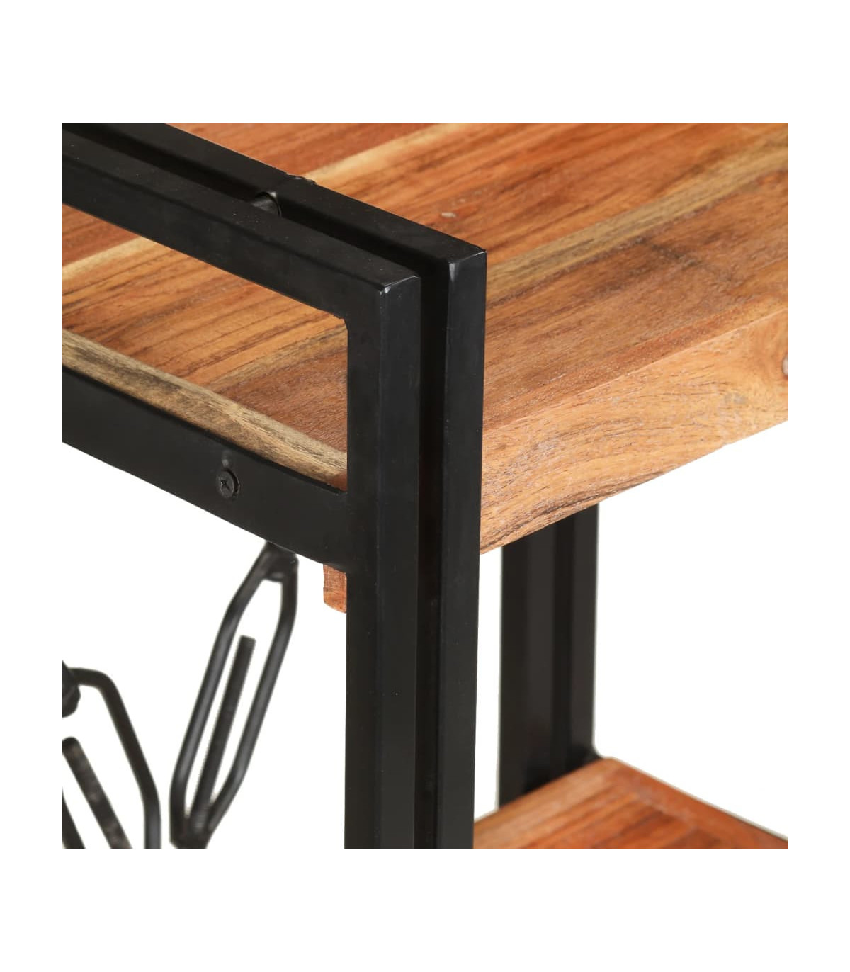 - Material: Solid mango wood with a natural finish, powder-coated iron