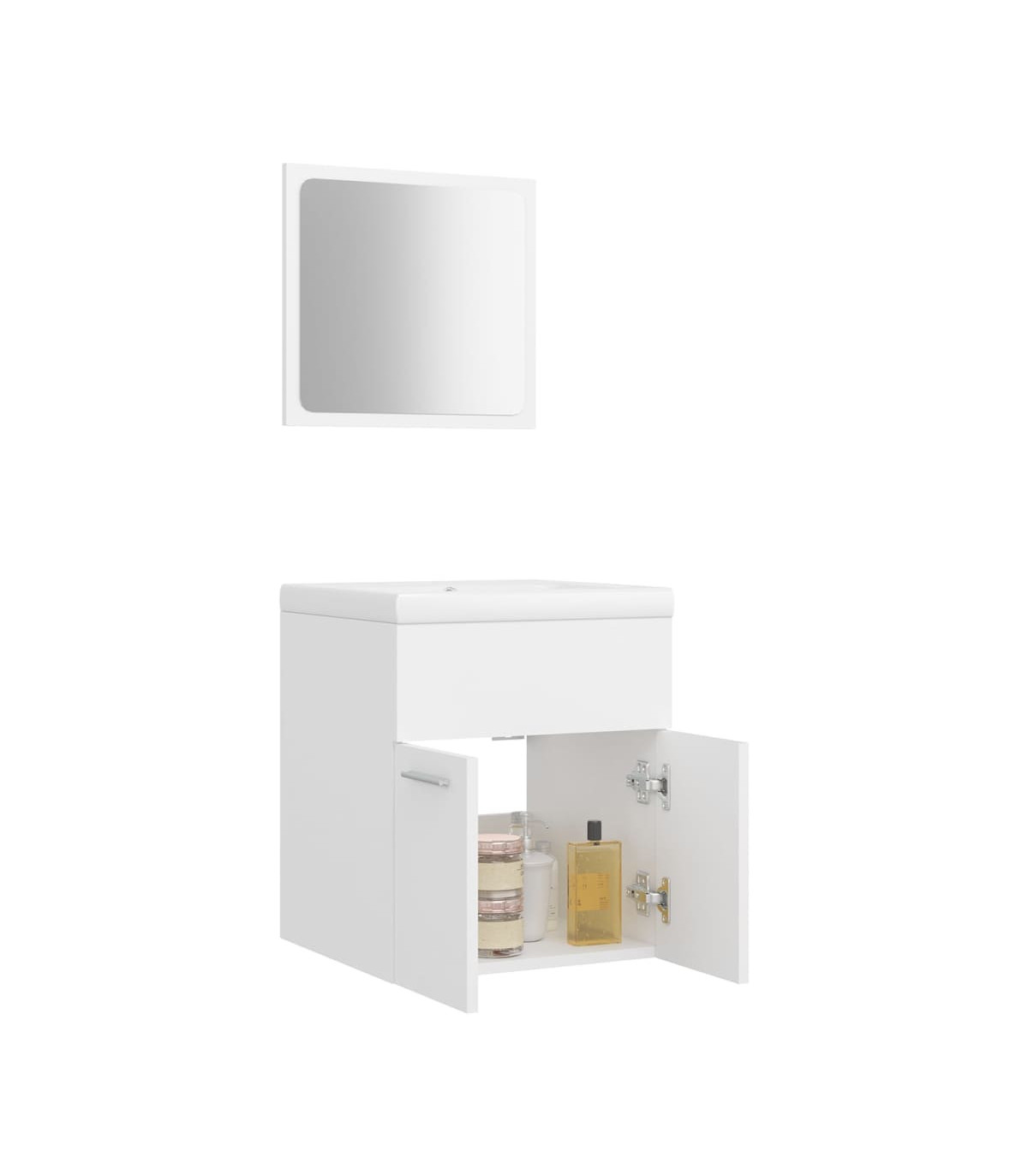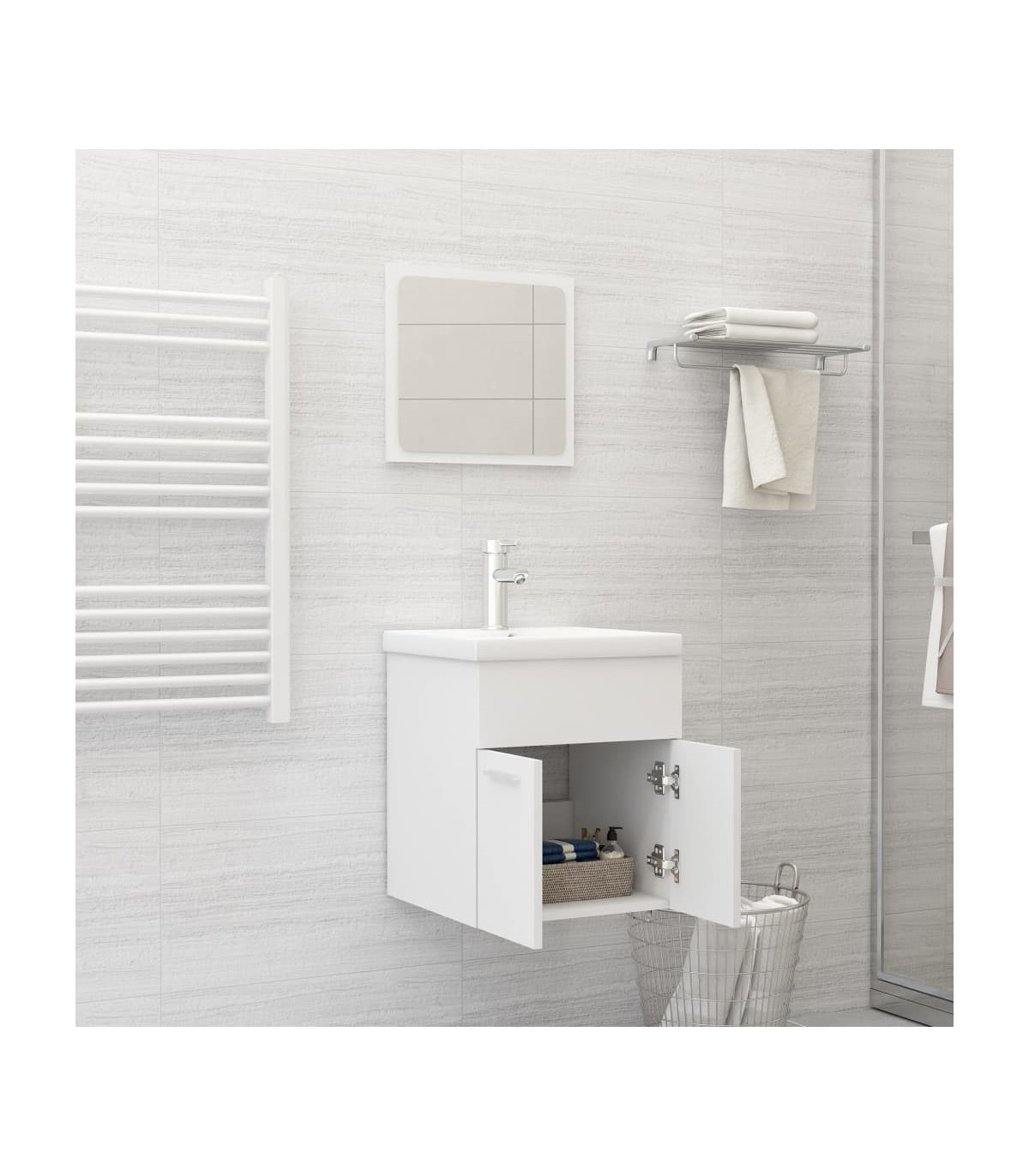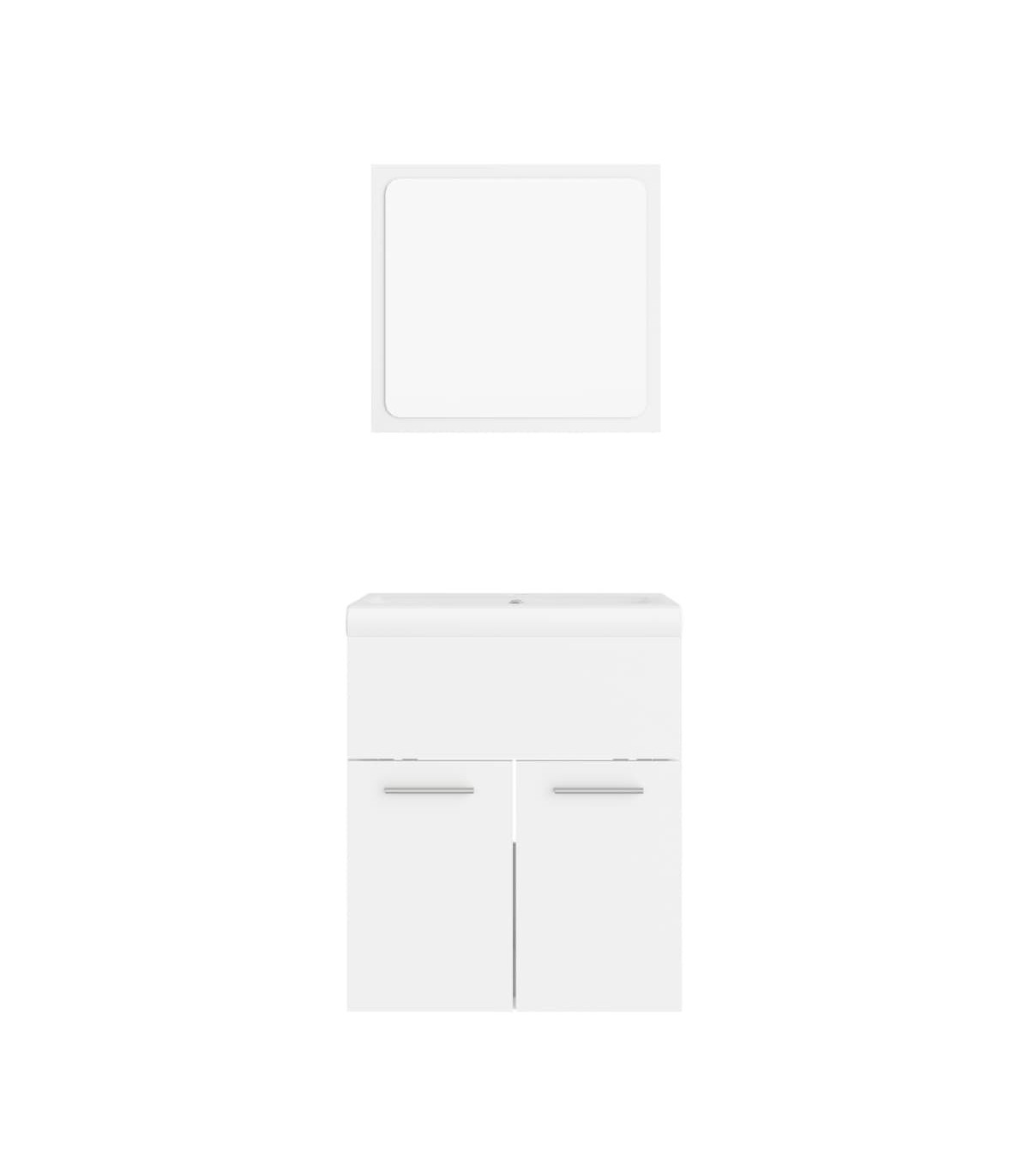 This stylish bathroom furniture set, which consists of a sink cabinet, a built-in basin, and a mirror, is a perfect match for your bathroom or washroom with a striking, tidy appearance. The sink cabinet is made of engineered wood, making it sturdy and stable. The cabinet has 1 compartment and 2 doors, offering ample space to store items. It fits perfectly under the sink and makes bathroom storage quite convenient. Made of ceramic, the basin can not only serve as a vessel for daily use but also as an adornment in your living space. Thanks to its trendsetting and contemporary design, this washbasin will definitely suit any decor. An overflow is also equipped to flow water out when it gets too full. Its glazed surface brings itself a modern yet elegant design. The mirror also adds an excellent appearance to your home decor. Additionally, this set is easy to clean with a damp cloth. Please note: The tap and the drain are not included in the delivery.