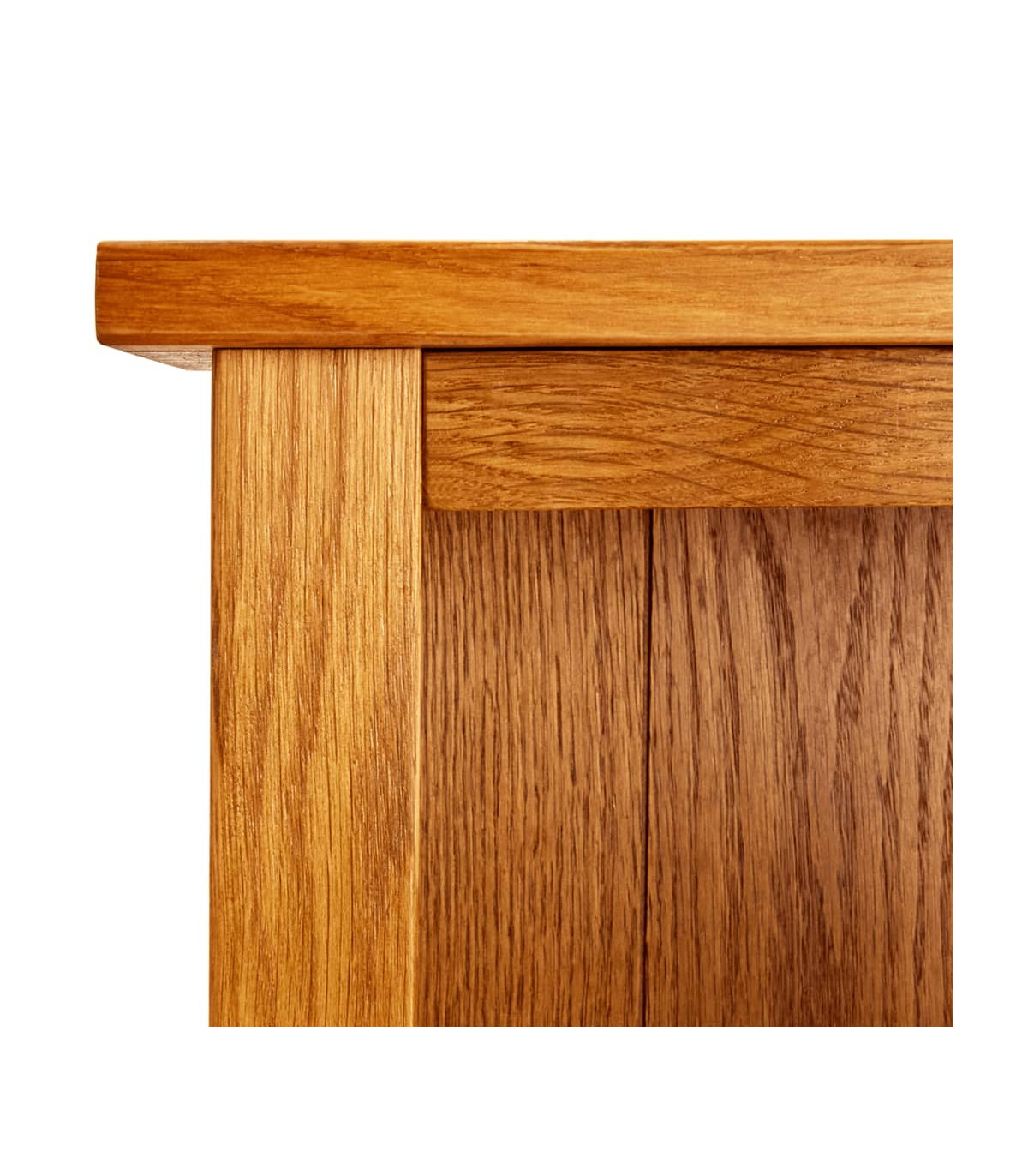 - Material: Solid oak wood with natural finish, oak veneered MDF