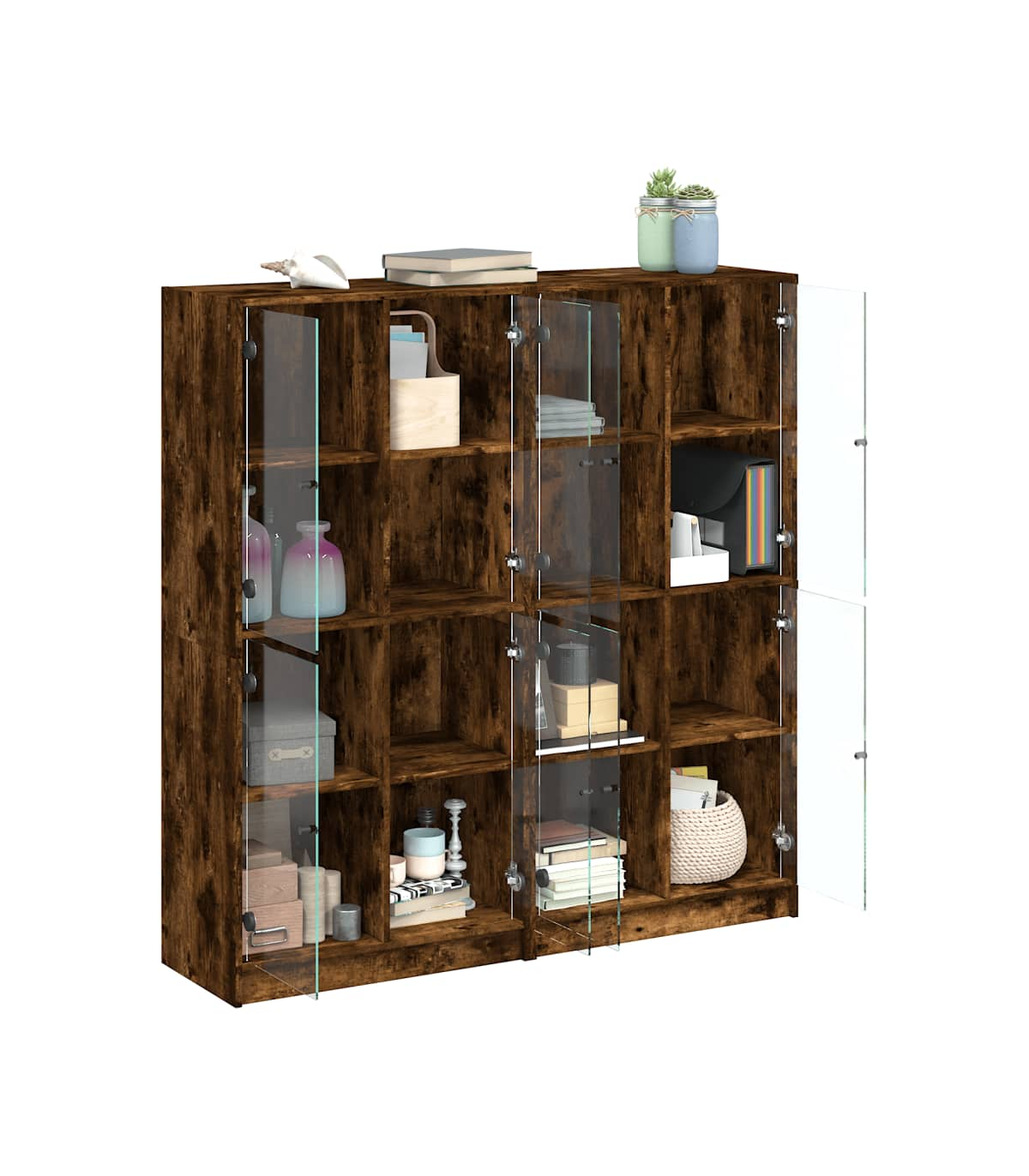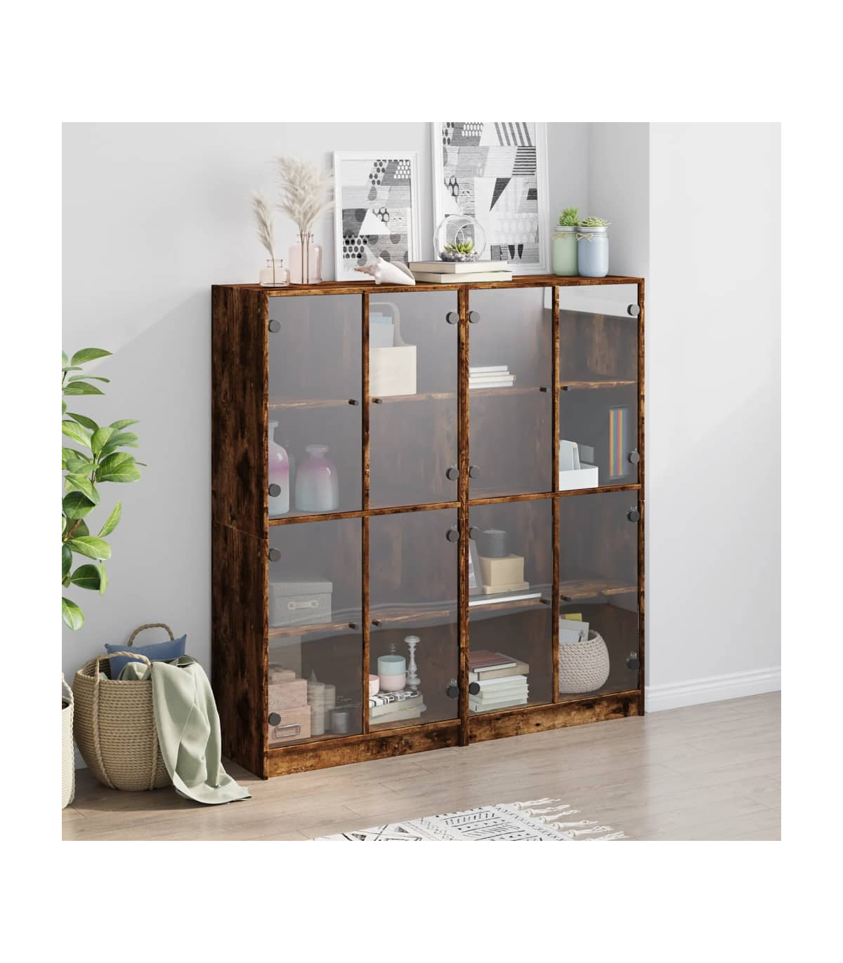 vidaXL Bookcase with Doors Smoked Oak 136x37x142 cm Engineered Wood
