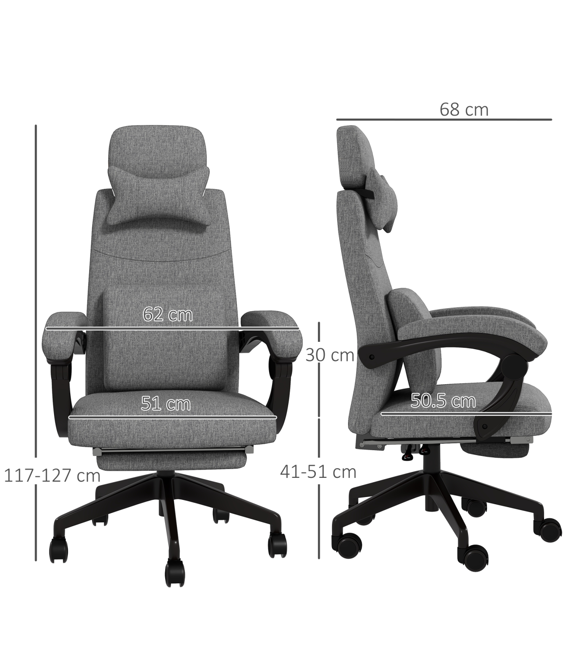 ? Dimensions: 117-127H x 62 x 68Dcm. Seat: 43-53H x 51W x 50.5Dcm. Reclined: 69-79H x 51W x 173Dcm. Footrest: 6H x 33L x 21Wcm. Head/neck pillow: 8D x 27L x 18Wcm. Back pillow: 8D x 33L x 30W. Back: 79H x 48W x 7Dcm