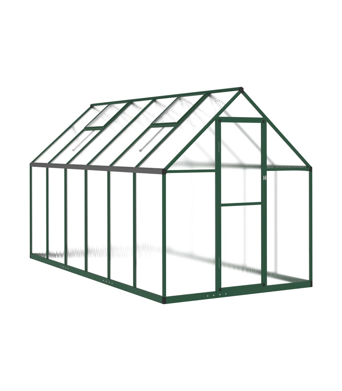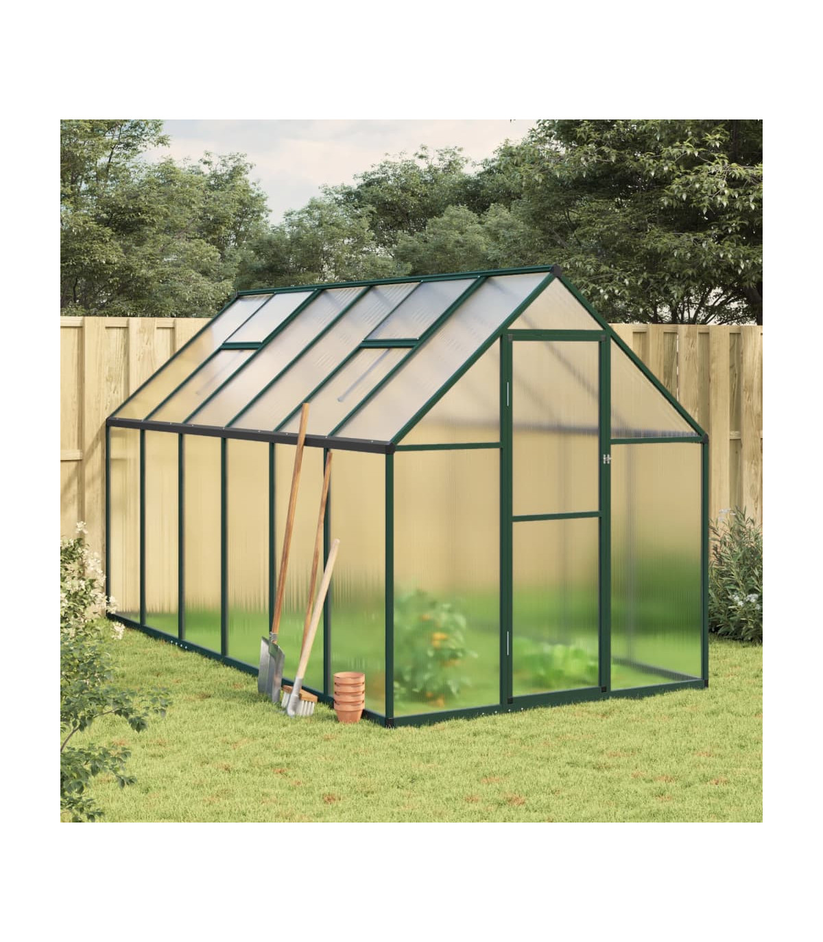 This greenhouse can accommodate a considerable number of plants and is a great solution for protecting your plants from the cold weather. Weather-resistant and sturdy material: The frame of the greenhouse is made of rust- and weather-resistant aluminium for high wind resistance and stability. The sheets are made of UV-resistant polycarbonate side panels, which are lightweight, durable and easy to maintain, and able to withstand winds and snow.Practical design: This greenhouse frame is equipped with a 6 cm high aluminium bottom profile structure that can be easily buried into the ground, saving on extra base costs. It also includes an additional 7 cm galvanised steel base to add structural stability.Thoughtful design: The built-in gutter system effectively allows water drainage, and the vent window is designed with 5 adjustable angles for air circulation to balance humidity and temperature. The hinged door also makes it easier for you to walk into the walk in greenhouse for daily use.Large walk-in grow space: The backyard greenhouse offers you ample space to cultivate a wide variety of plants or crops.Fast assembly design: This greenhouse frame features a fast assembly system for efficient and rapid installation. Warning: The greenhouse is not a construction building or conservatory, intended for leisure purposes. It is an impermanent standalone agricultural installation intended for hobby gardening only.