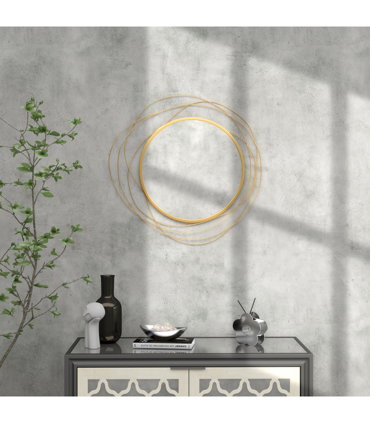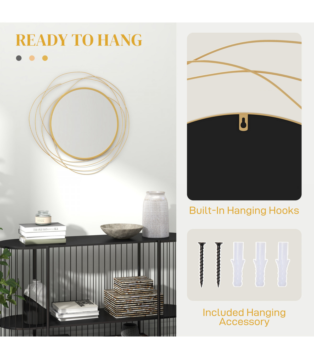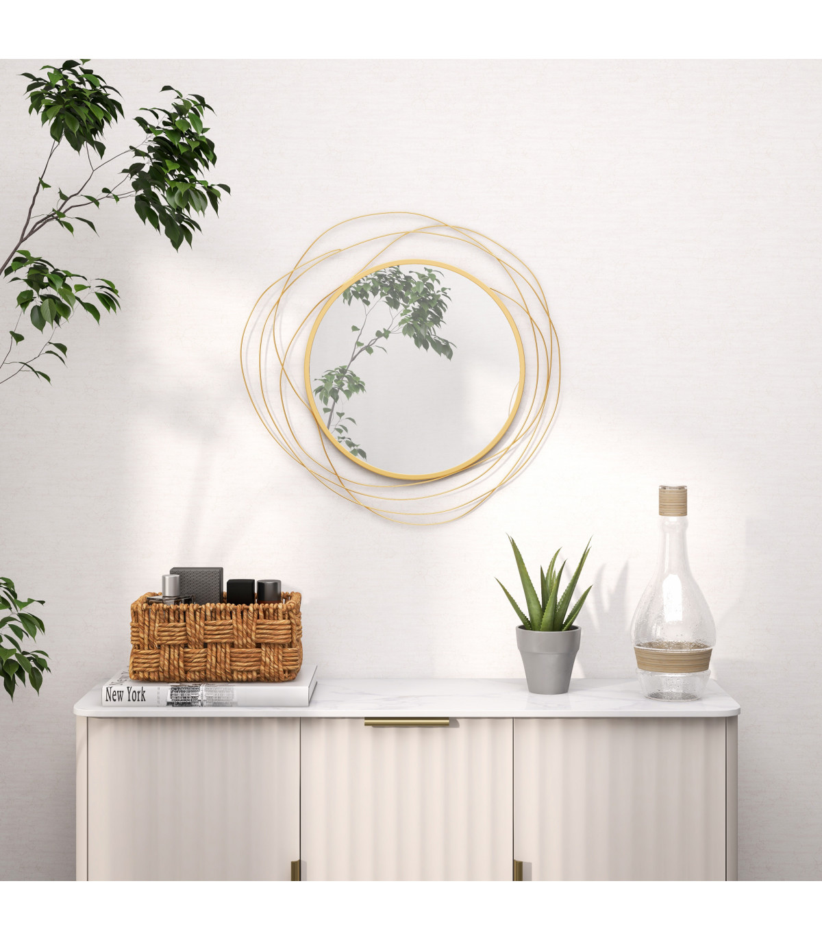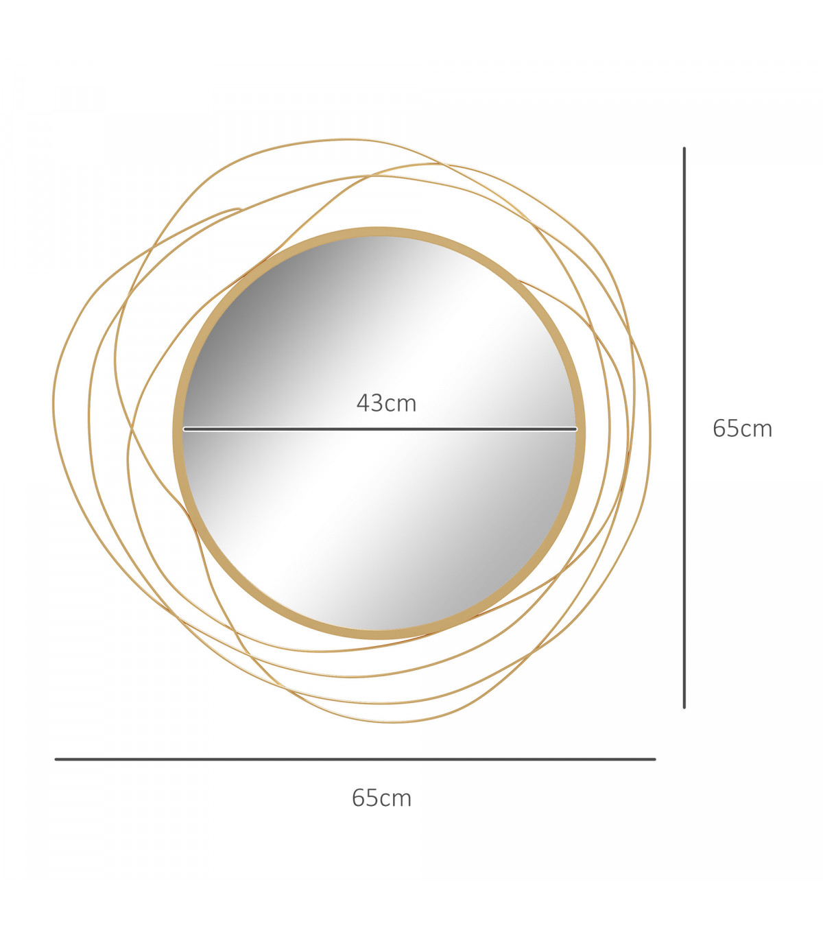 HOMCOM Metal Wall Art 65cm Round Mirror for Living Room Dining Room Gold Tone