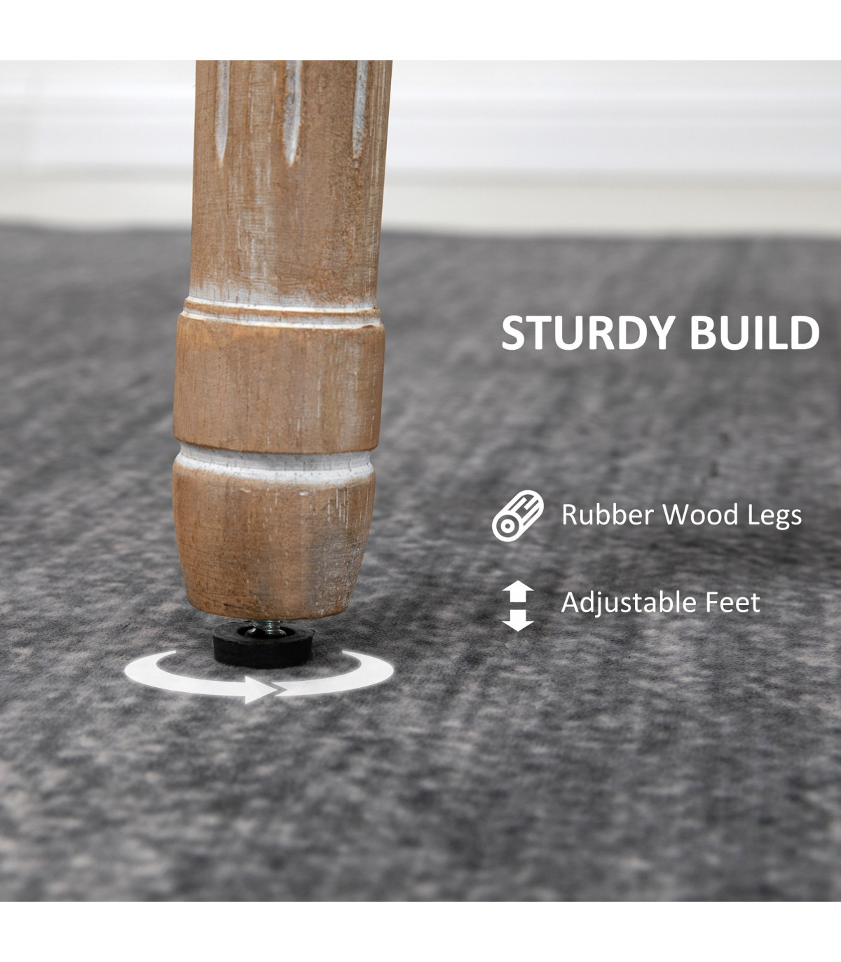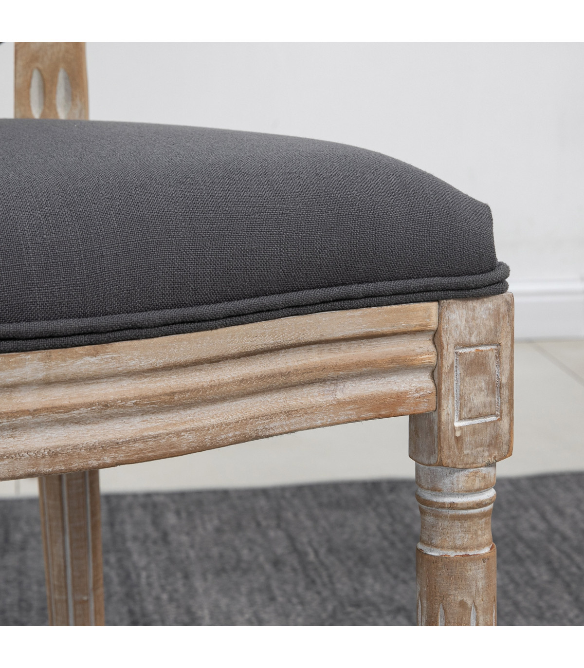 ● French-inspired design: oval backs and carved fluted legs; ● Sponge seats keep you comfortable, with smooth linen-look upholstery; ● Strong and supportive rubberwood frames; ● Adjustable feet for balance, also gently protect floor from light marks; ● Maximum load 120kg, assembly required; ● Colour: Grey; ● Material: Sponge, Rubber Wood, Polyester; ● Overall Dimensions: 49W x 56D x 96Hcm; ● Seat Size: 49W x 42D x 54Hcm; ● Back Size: 39W x 49Hcm; ● Max Load: 120kg; ● Item Label: 835-524V70GY