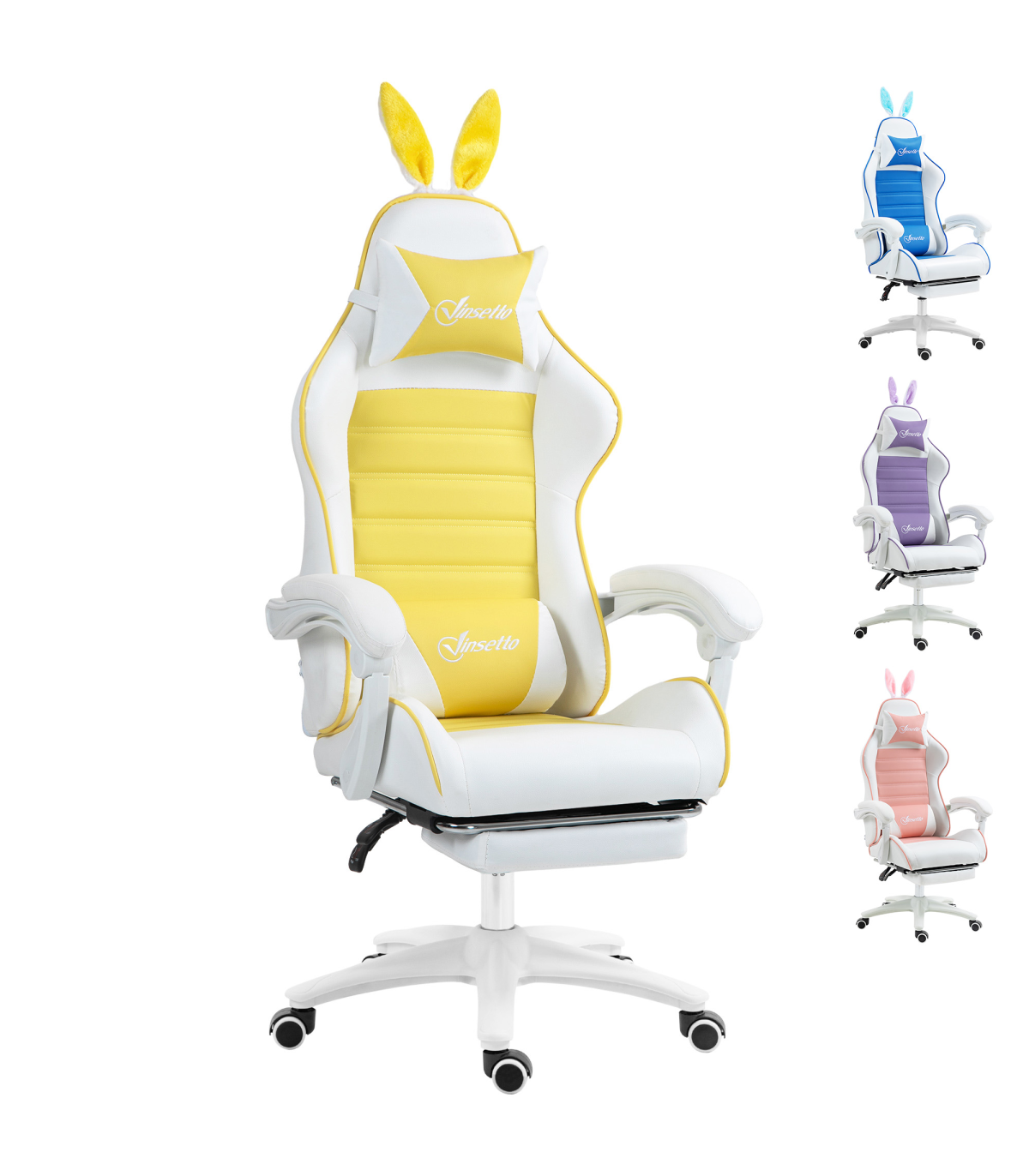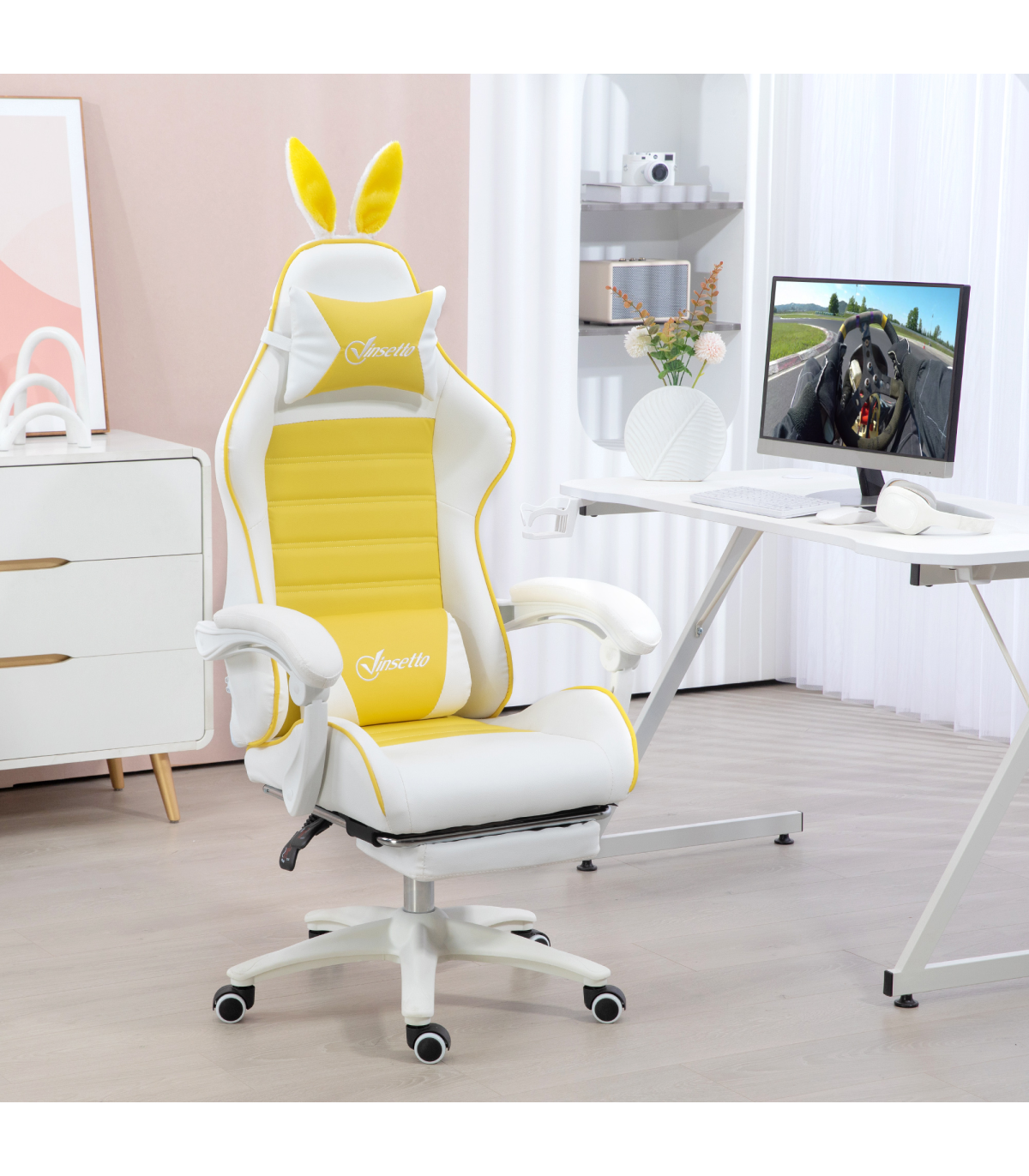 Vinsetto Racing Style Gaming Chair with Footrest Removable Rabbit Ears, Yellow