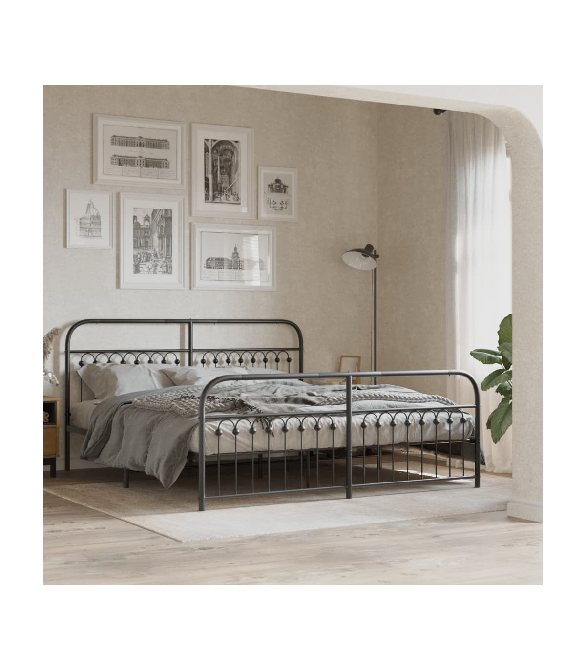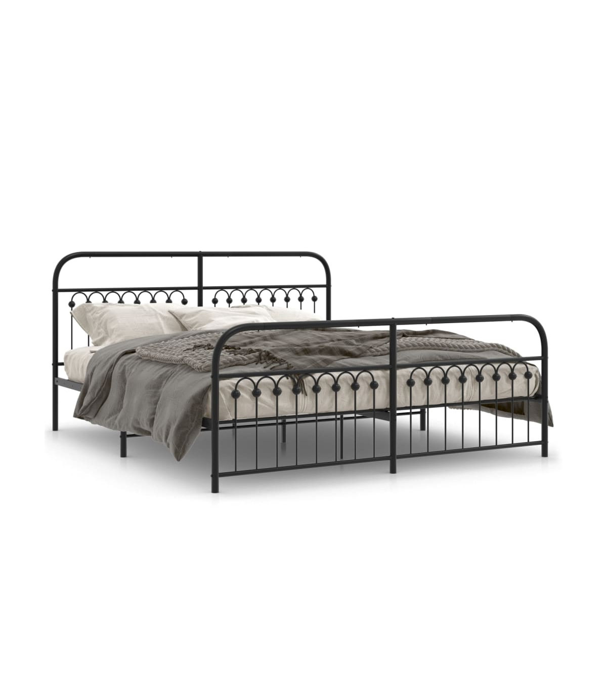 vidaXL Metal Bed Frame with Headboard and Footboard Black 183x213 cm
