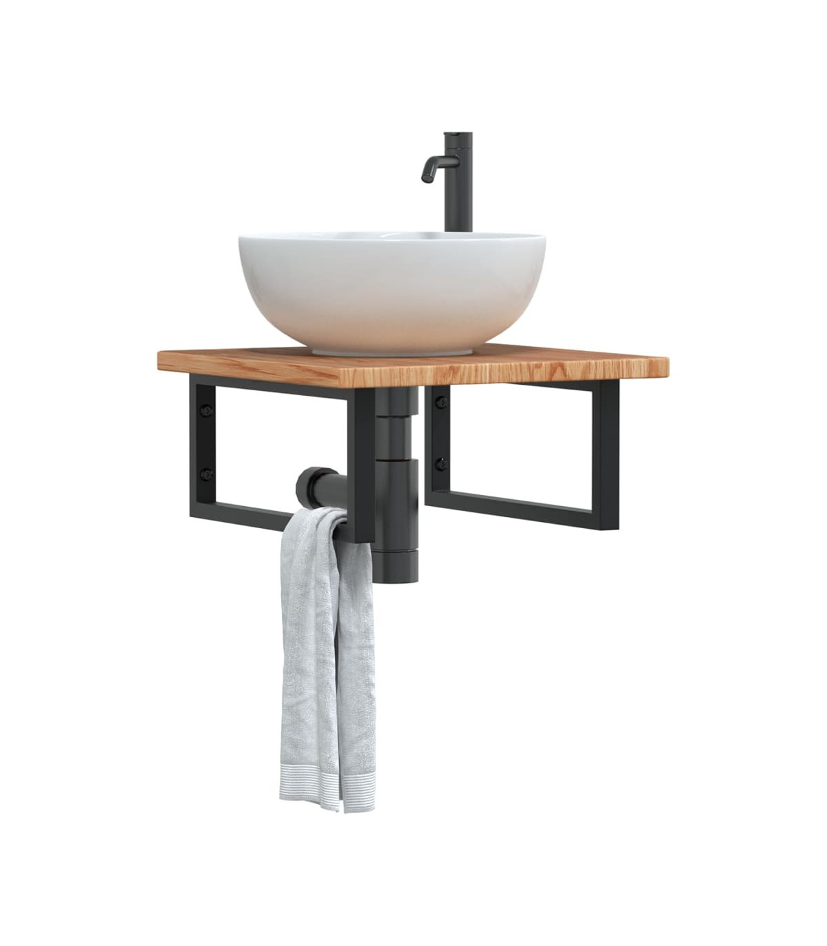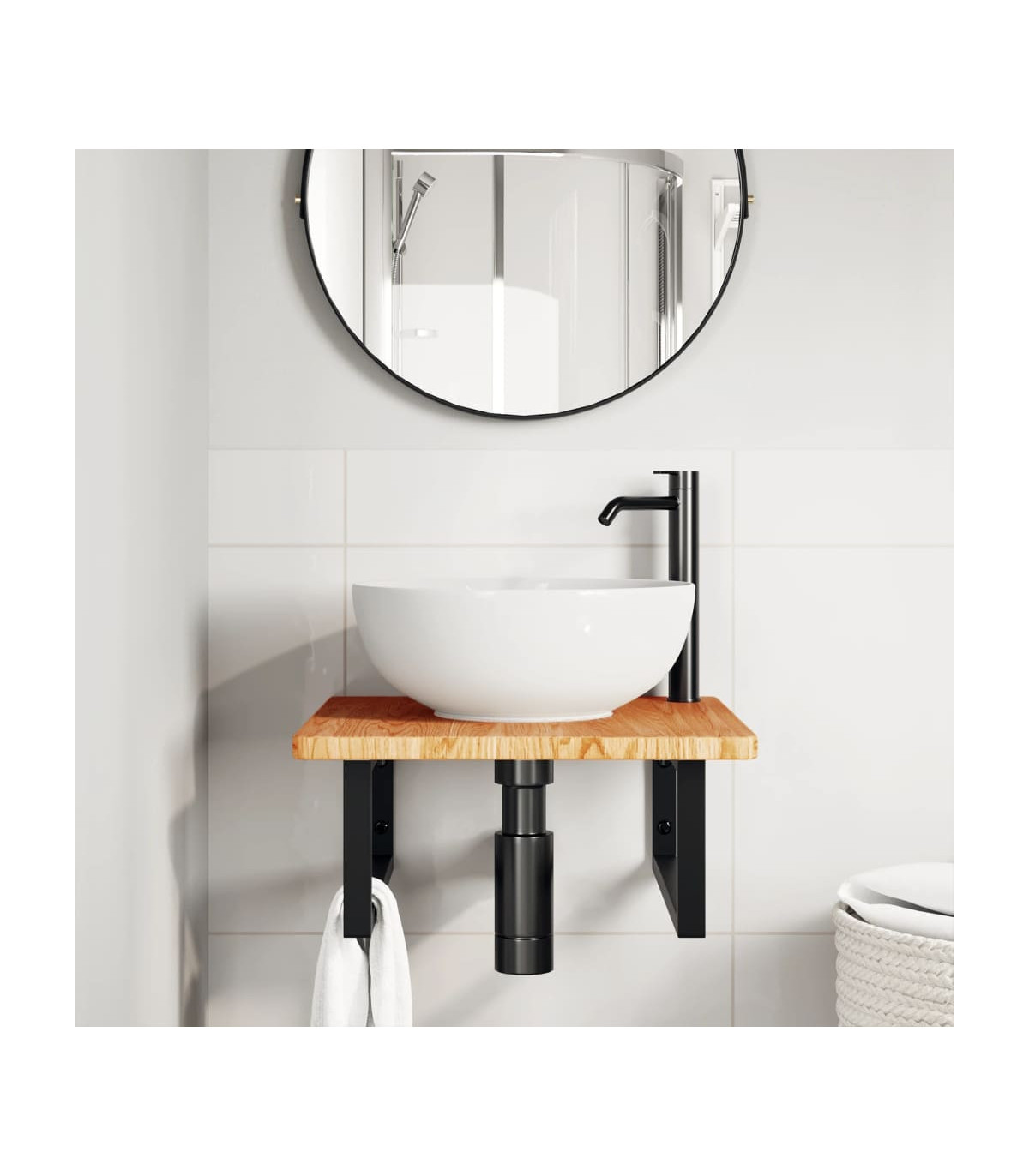 The wall mounted basin shelf securely attaches to the wall, providing an elegant and space-saving solution for your bathroom. Sturdy and long-lasting: This basin shelf is combined with a steel structure and a solid oak wood top, making it sturdy, stable, and long-lasting. Space-saving: The floating basin shelf has ample space to store creams and small items. Thanks to the rectangular shape, you can hang towels or other things on the support to save space. Easy to use: The countertop comes undrilled to allow the basin to be mounted on the left, right, or in the centre, depending on your room's requirements. Thanks to the pre-drilled holes in the holder, it can be easily assembled with the tabletop and mounted on the wall. Wide applications: Thanks to its modern design, it provides additional space for various types of bathrooms. Good to know:Screws are not included, you can purchase the screws separately based on the information provided below. Wall attachment: 2 pcs M8 expansion screws per bracket Wooden top: 2 pcs M5x18 screws (T=2) or 2 pcs M5x20 screws (T=2,5/4cm) per bracket