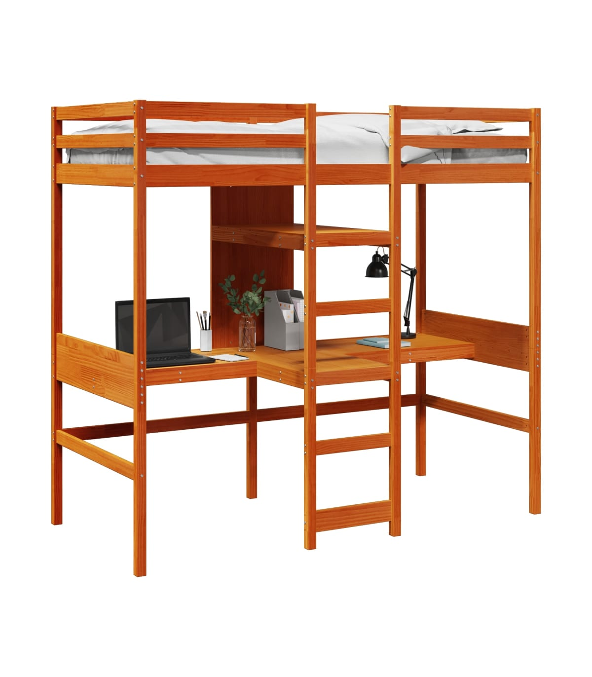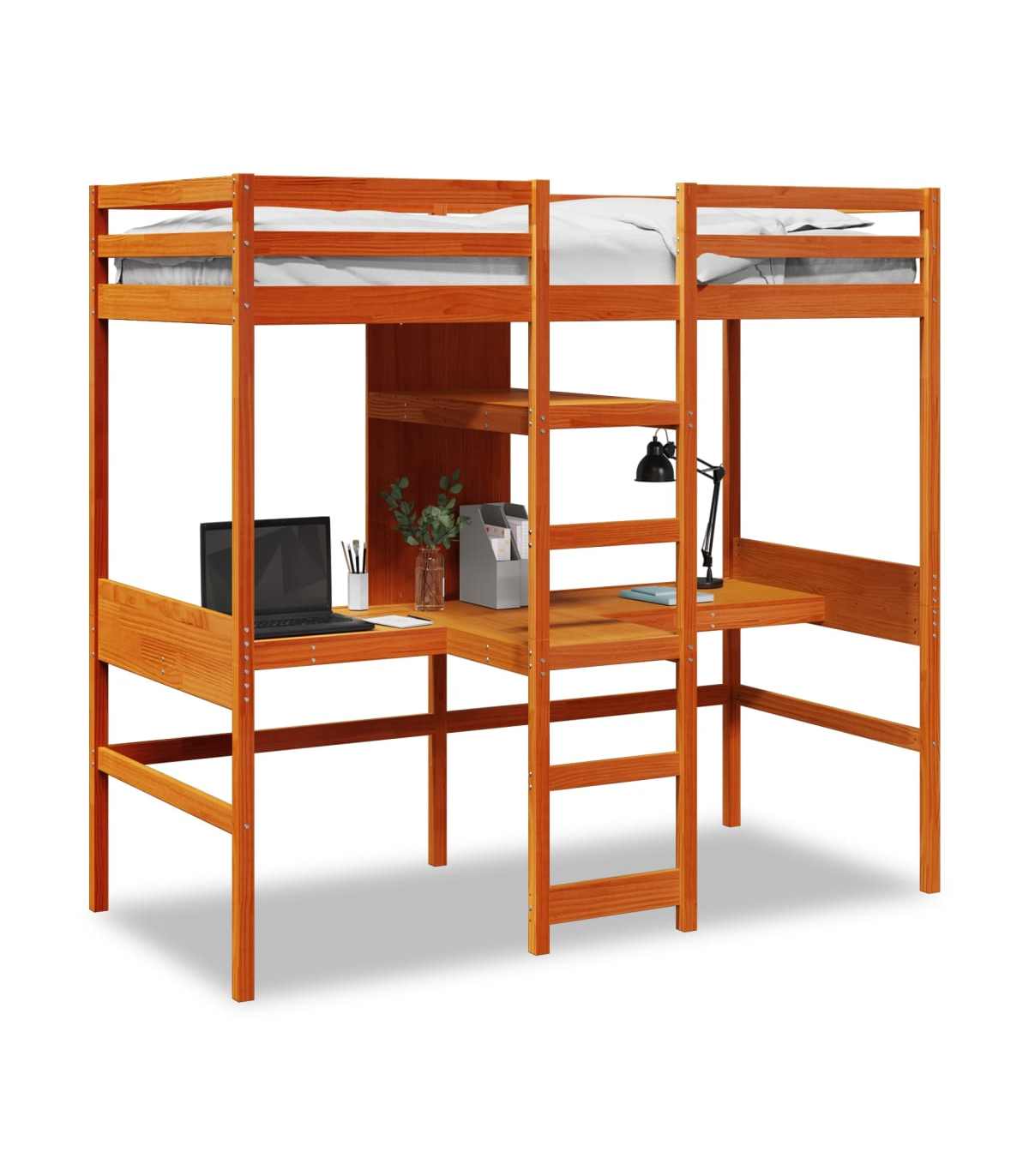 vidaXL Loft Bed Frame without mattress Wax Brown 90x190cm Solid Wood Pine