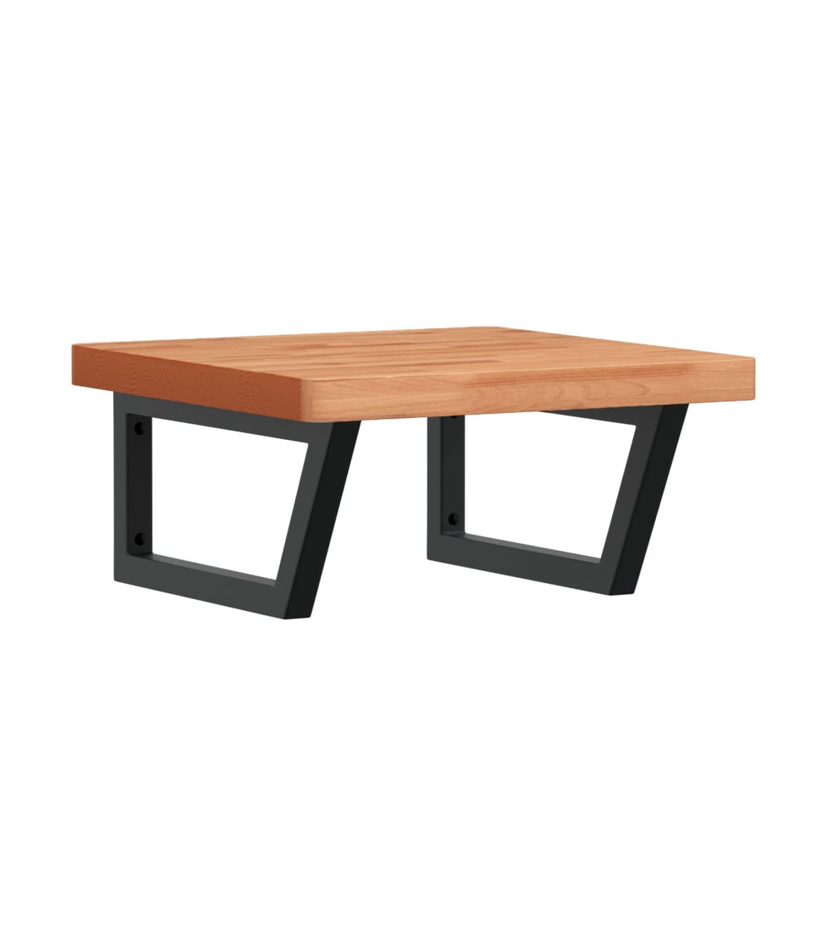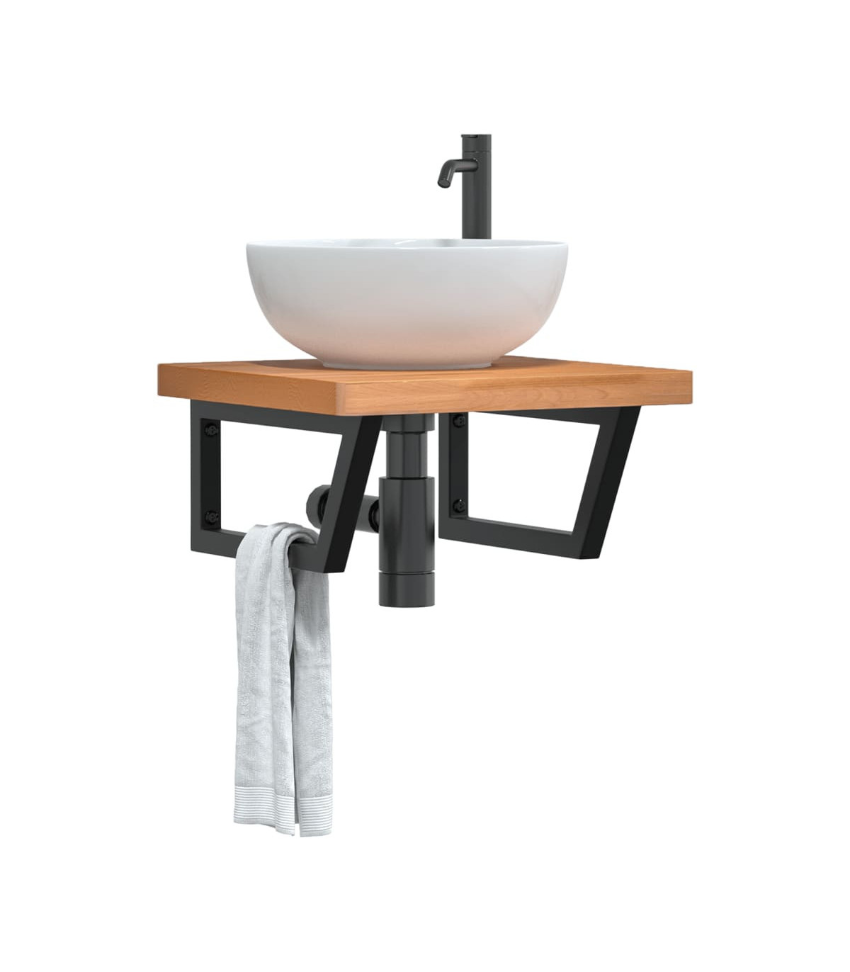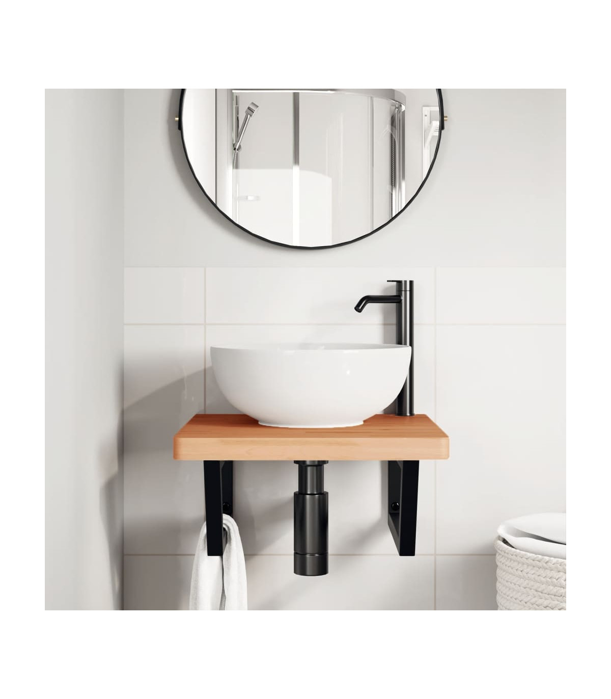 The wall mounted basin shelf securely attaches to the wall, providing an elegant and space-saving solution for your bathroom. Sturdy and long-lasting: This basin shelf is combined with a steel structure and a solid beech wood top, making it sturdy, stable, and long-lasting. Space-saving: The floating basin shelf has ample space to store creams and small items. Thanks to the rectangular shape, you can hang towels or other things on the support to save space. Easy to use: The countertop comes undrilled to allow the basin to be mounted on the left, right, or in the centre, depending on your room's requirements. Thanks to the pre-drilled holes in the holder, it can be easily assembled with the tabletop and mounted on the wall. Wide applications: Thanks to its modern design, it provides additional space for various types of bathrooms. Good to know:Screws are not included, you can purchase the screws separately based on the information provided below. Wall attachment: 2 pcs M8 expansion screws per bracket Wooden top: 2 pcs M5x18 screws (T=2) or 2 pcs M5x20 screws (T=2,5/4cm) per bracket