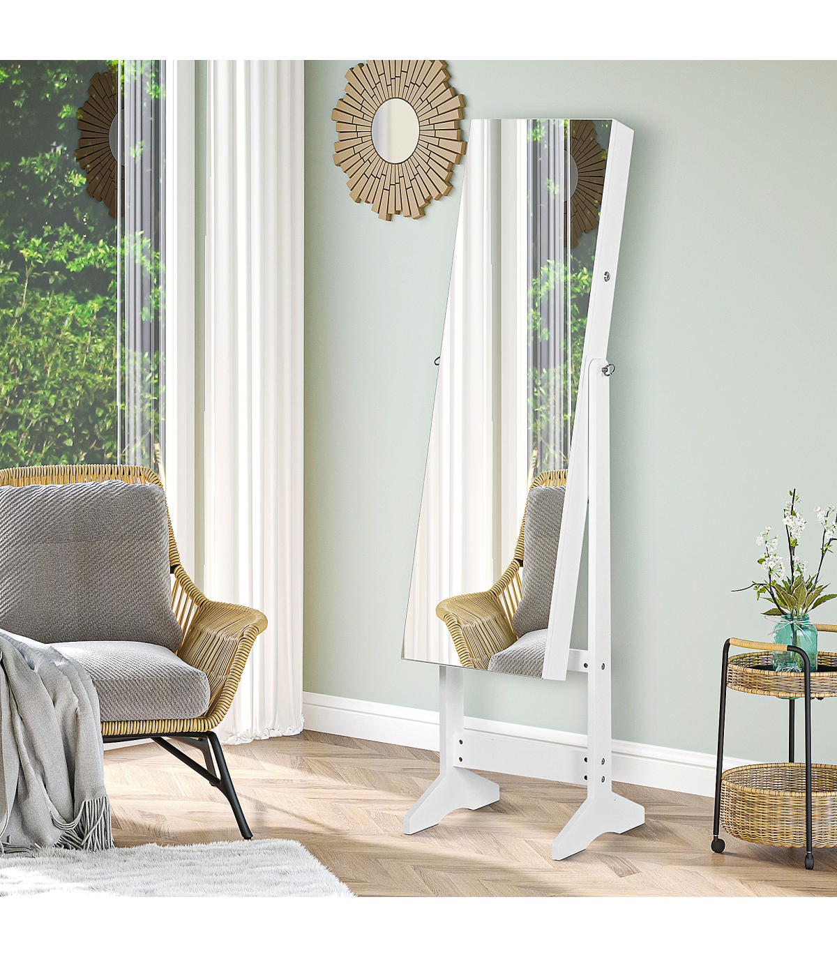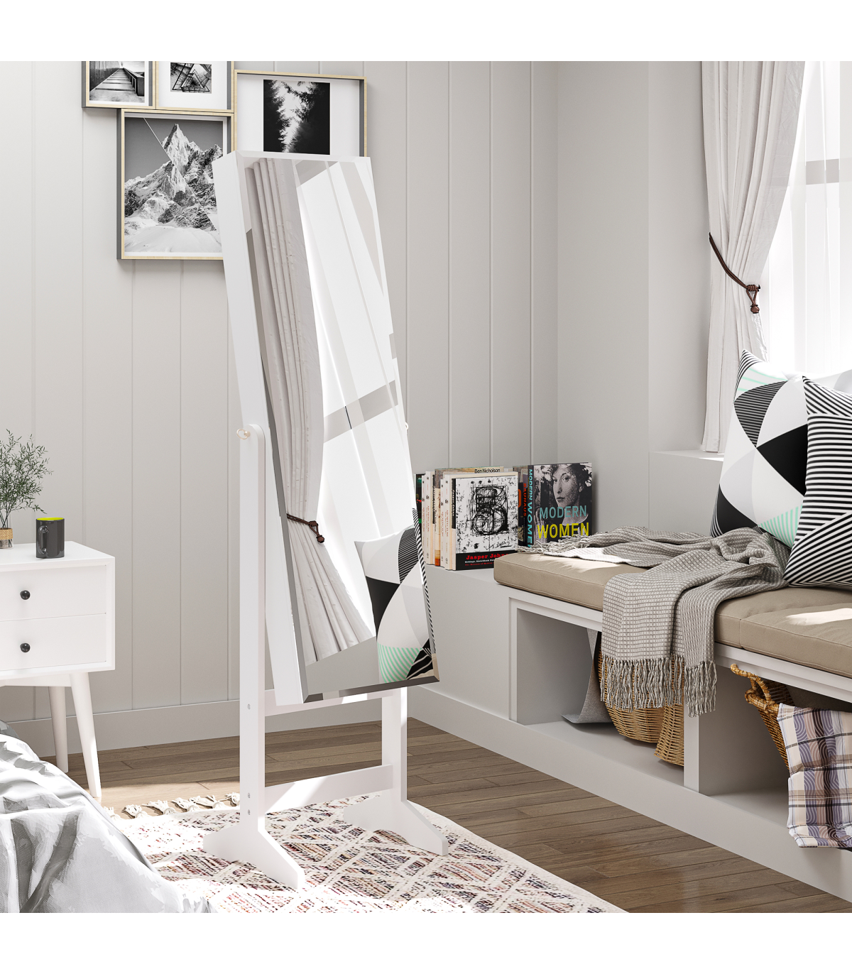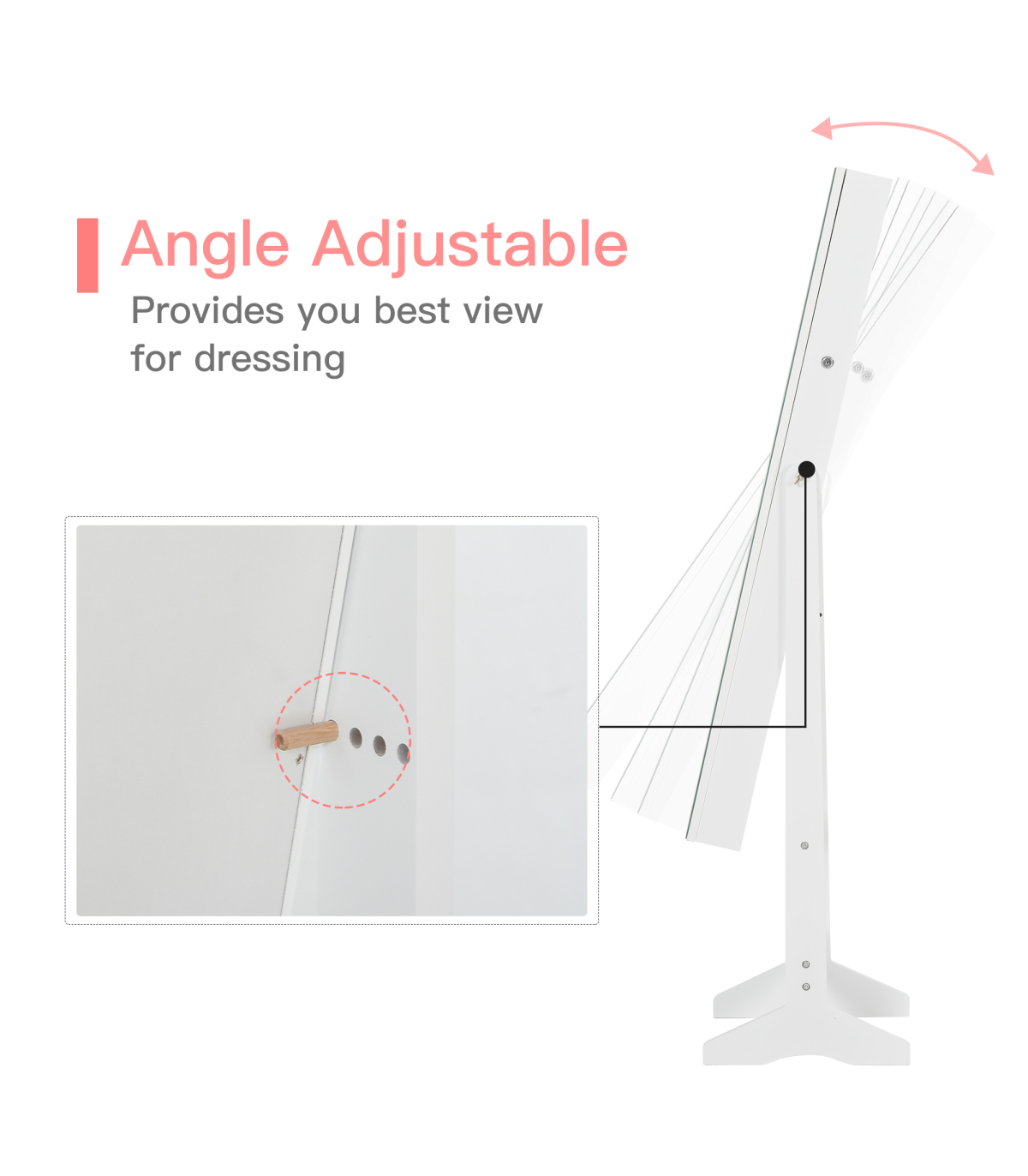 Full length mirror to get ready in, angle is adjustable to suit you