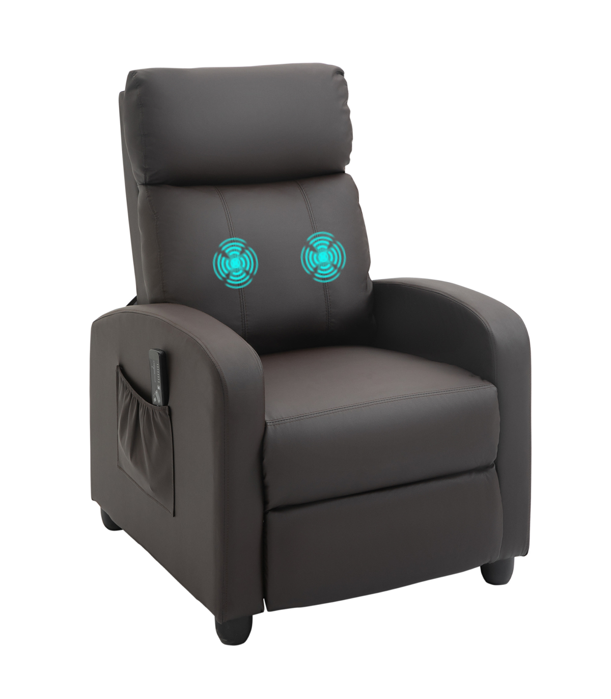 TWO MASSAGE POINTS AND ADJUSTABLE SETTINGS: Fitted in back to relax you. Eight modes to choose from, five intensity levels and two time settings.150RECLINING: Moves for you to lean back and relax. Works with the footrest - perfect for time-outs at home or in the office.COMFORTABLE