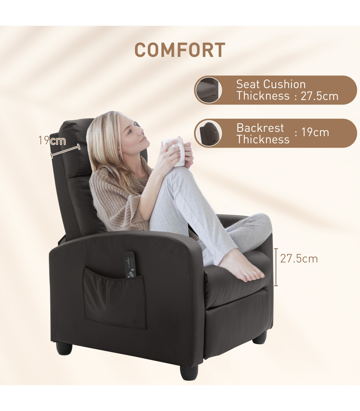 Filled with thick sponge on the seat and back, with fixed armrests. High back for full support.REMOTE INCLUDED: Easy to control, with storage pocket. DIMENSIONS: 98H x 68W x 88Dcm. Reclined: 77H x 68W x 158Dcm. Seat: 48W x 50.5Dcm.MAXIMUM LOAD 120KG. ASSEMBLY REQUIRED.