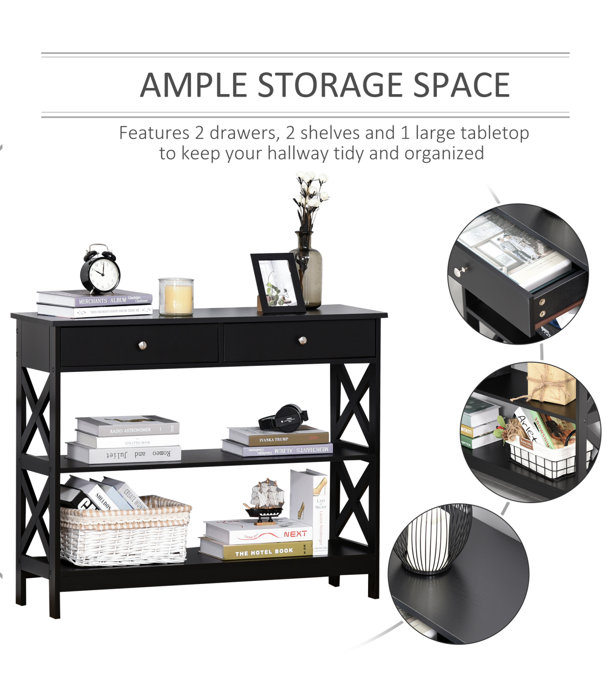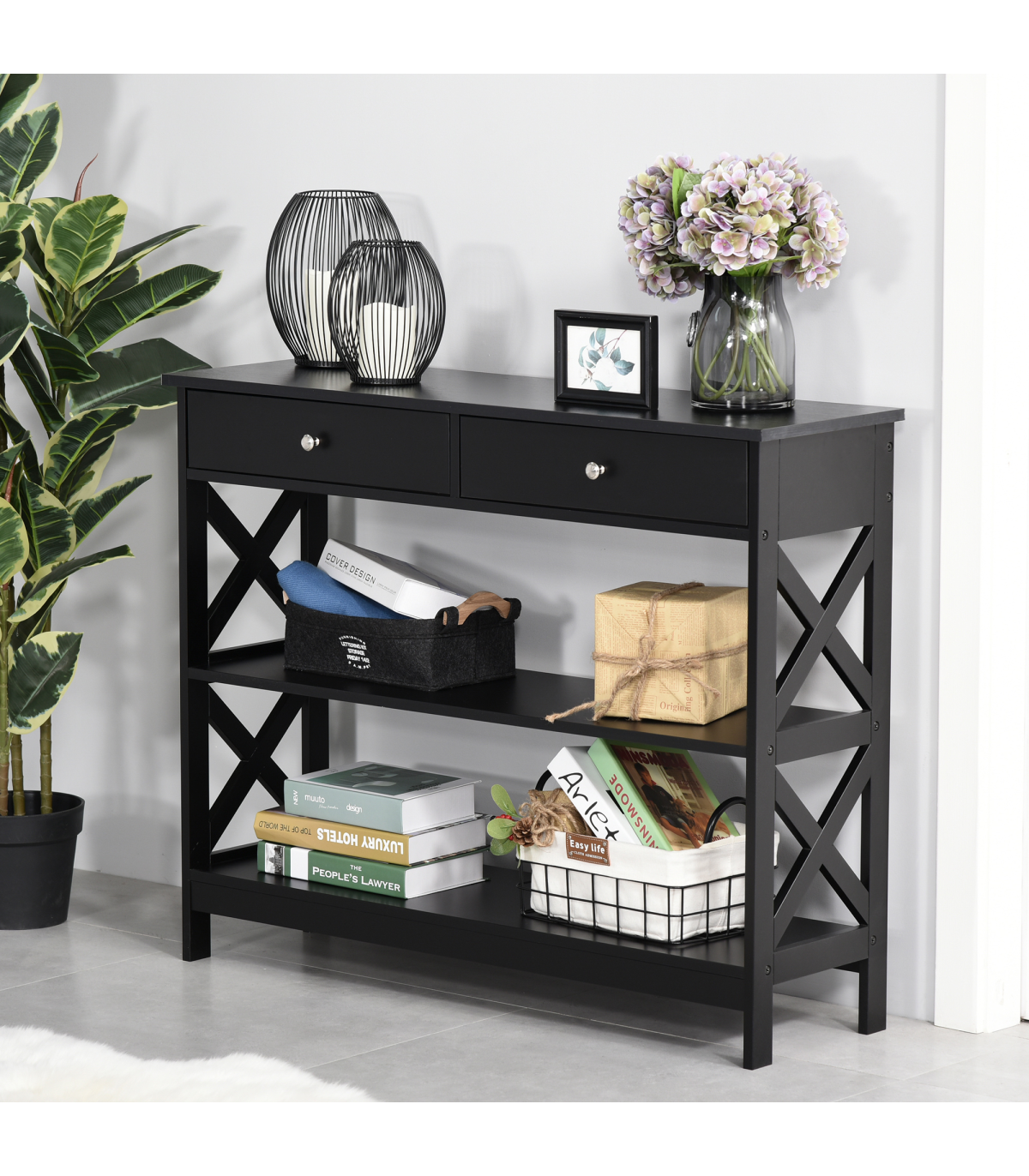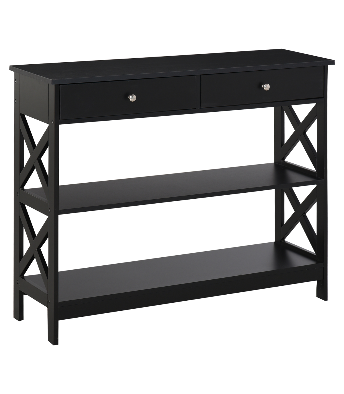 Console Table Side Desk Shelves Drawers Open Top Hallway Black