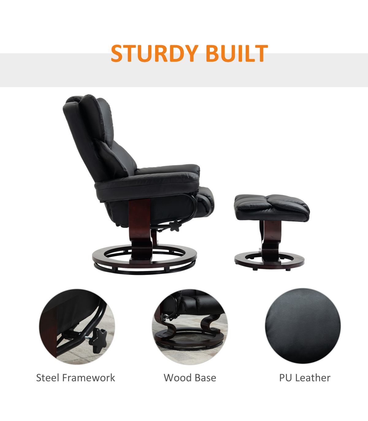 Padded PU Leather Manual Reclining Armchair Sofa Chair w/ Footstool Black
