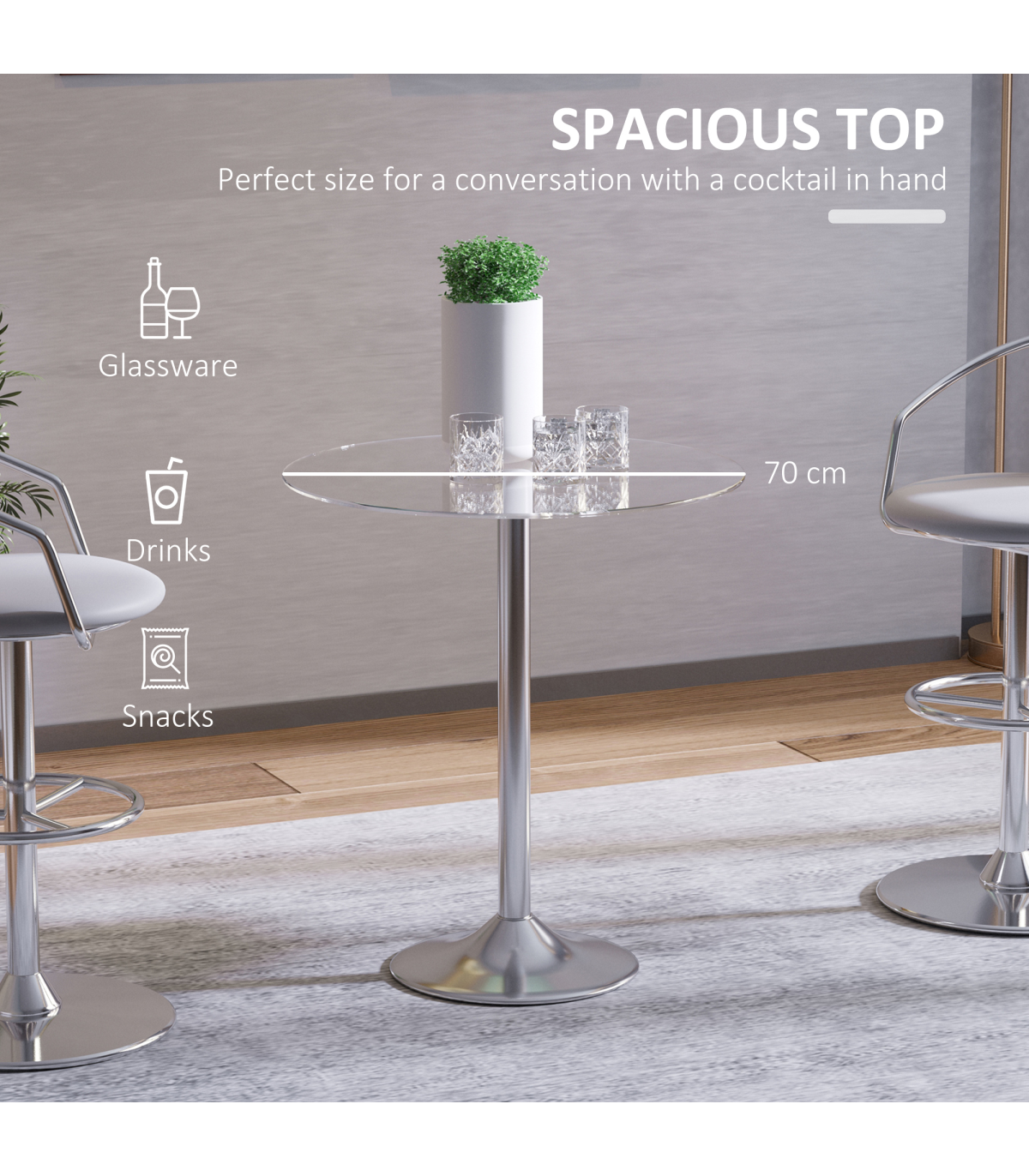- Supportive metal frame, with rounded base for balance