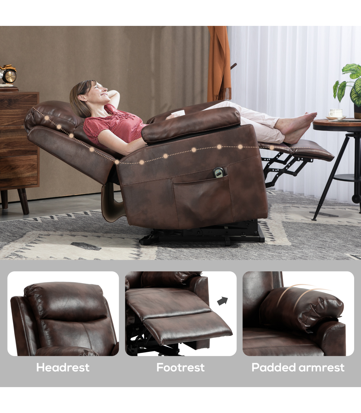 ● 70° lifting angle to sit in and get out of chair easily