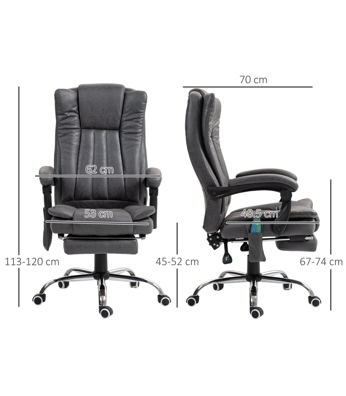 Vinsetto 6-Point Vibrating Heat Massage Chair w/ Microfibre Charcoal Grey