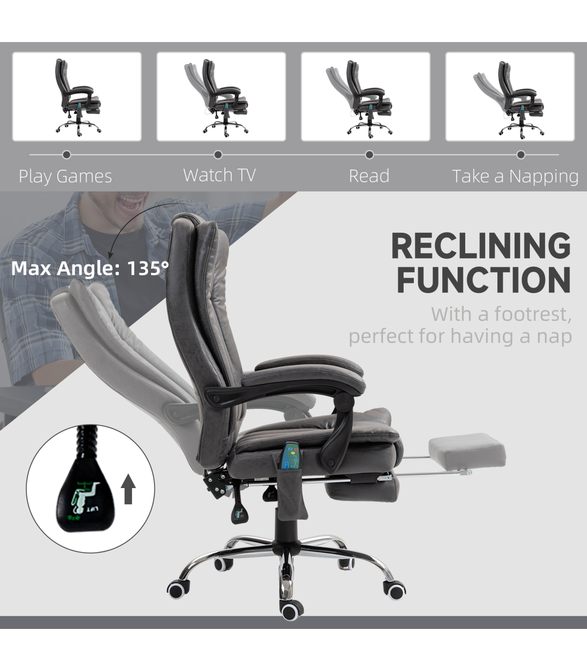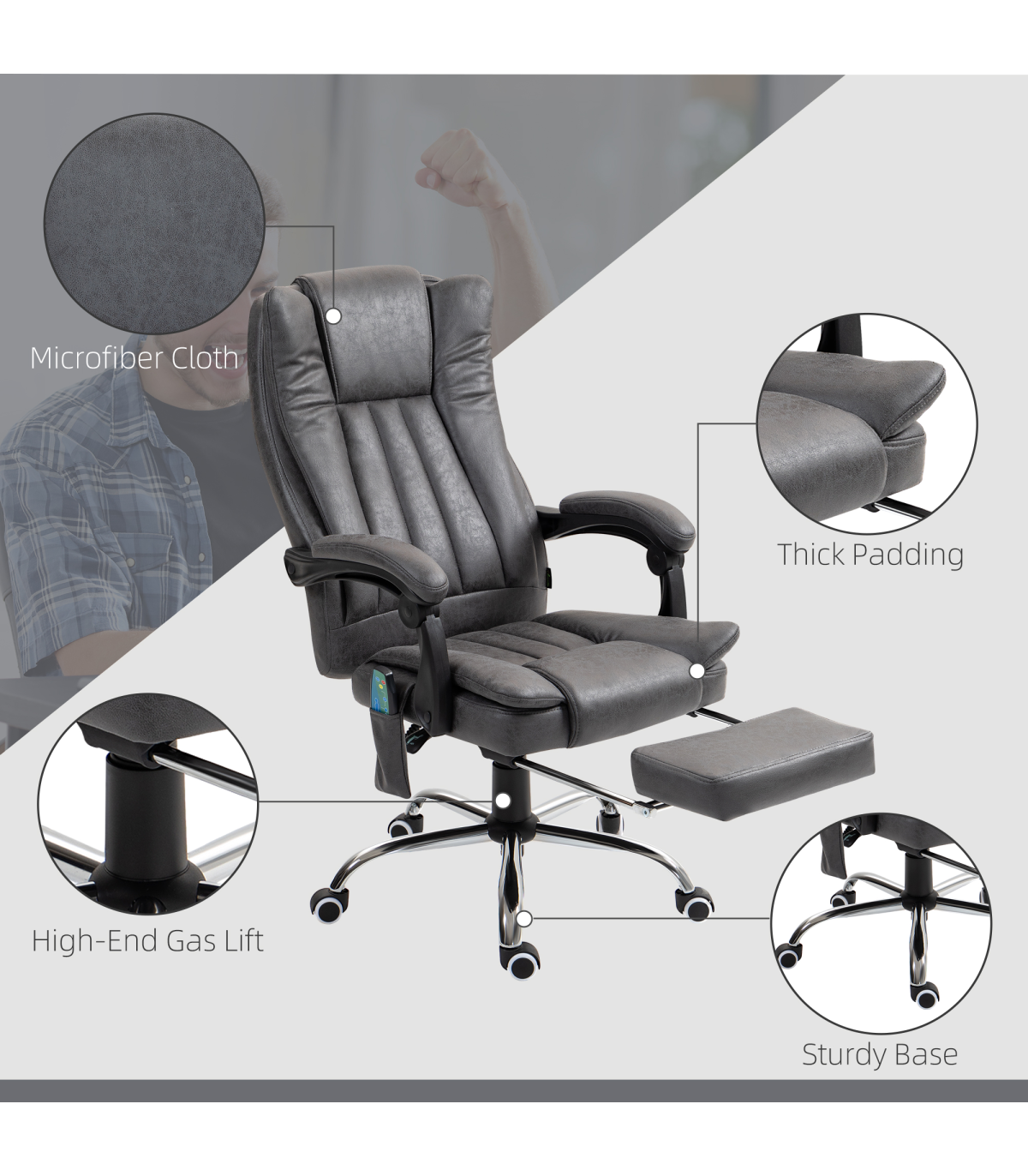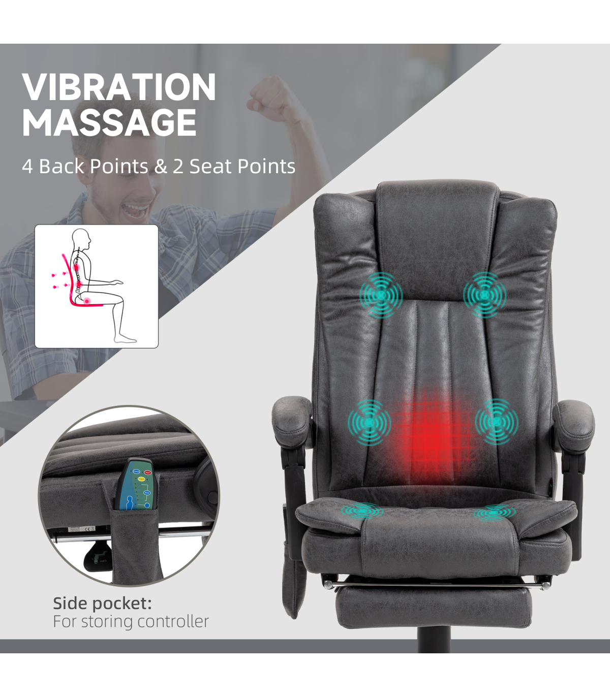 ● Six vibration massage points on the back, lower back, and thighs