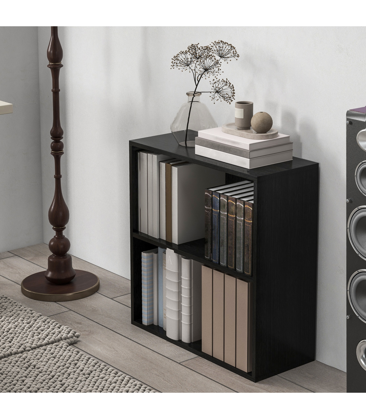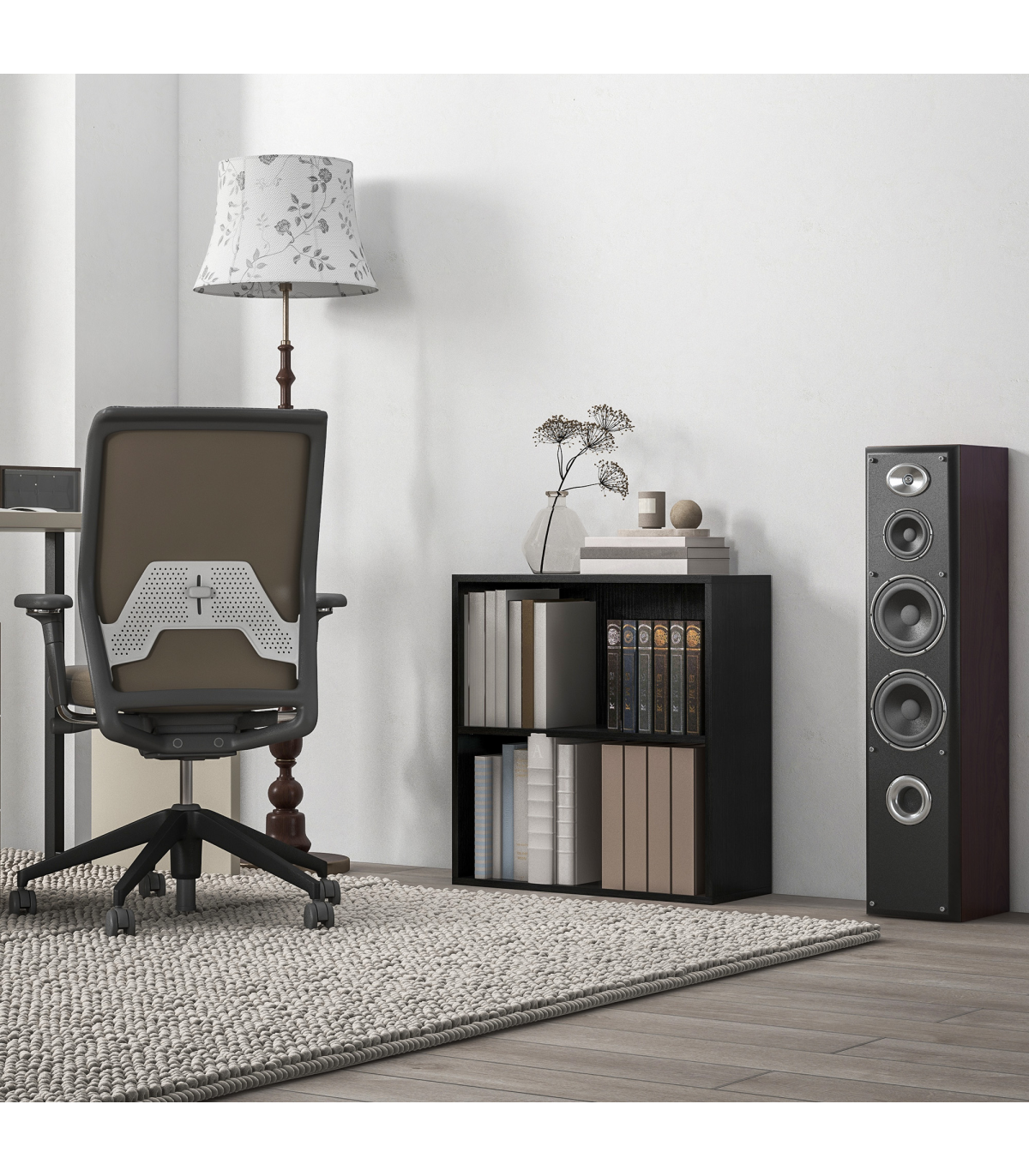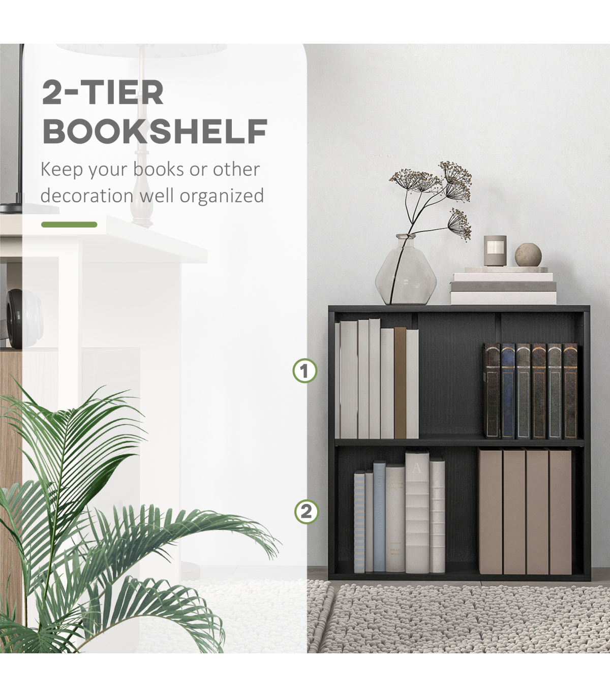 HOMCOM Bookshelf Display Storage Shelf with 2 Compartments for Study Black