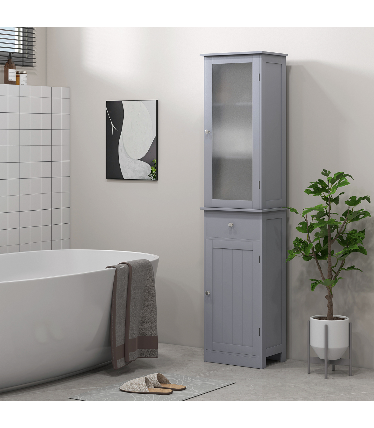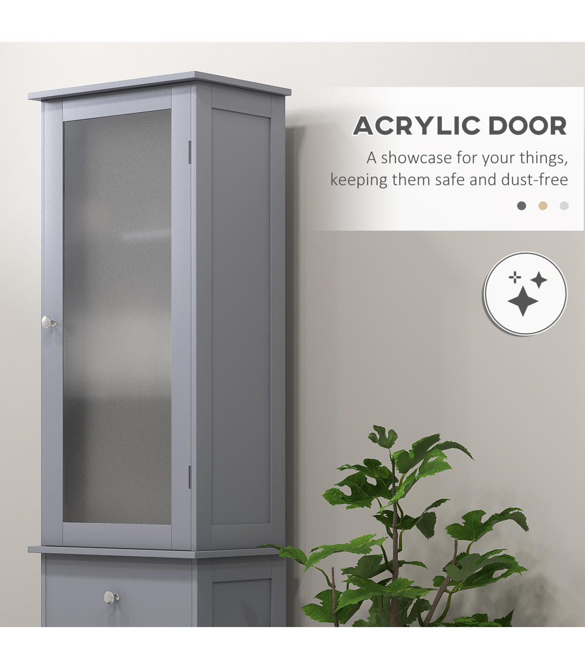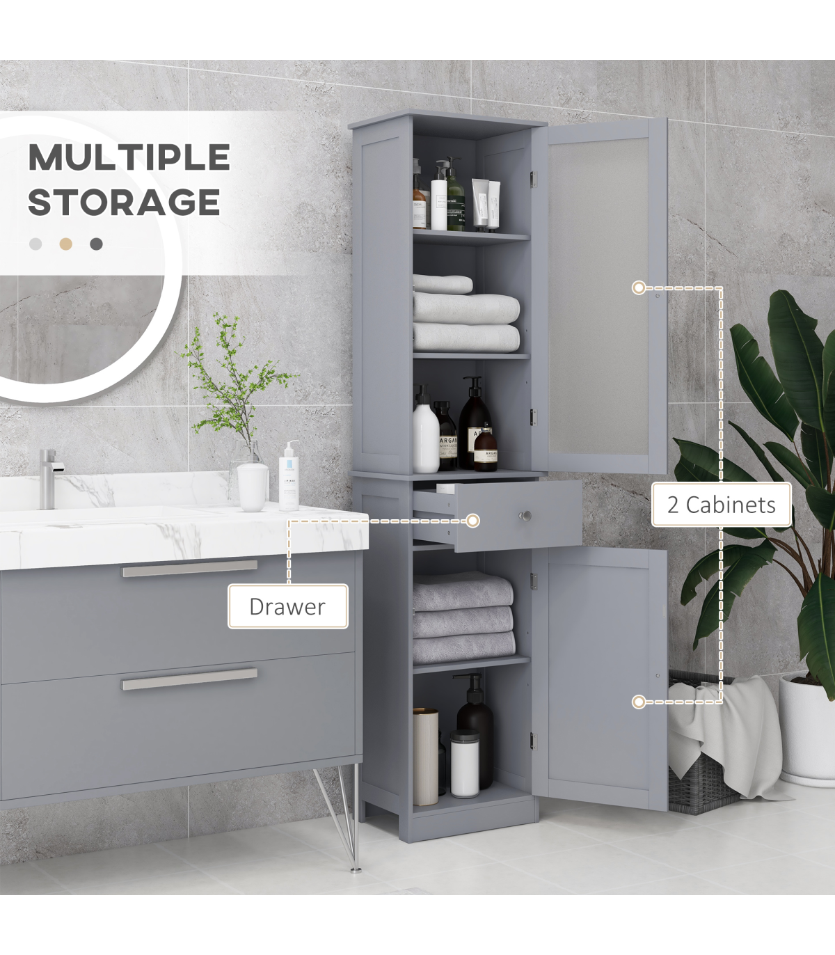 ● Compact and tall cabinet perfectly fits in narrow spaces