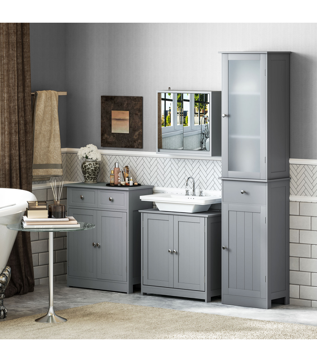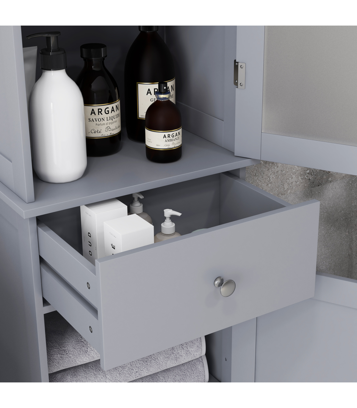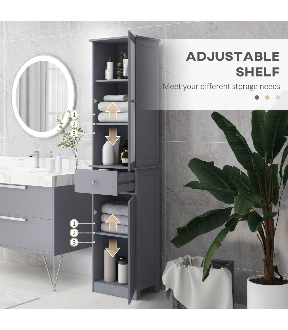 ● Compact and tall cabinet perfectly fits in narrow spaces