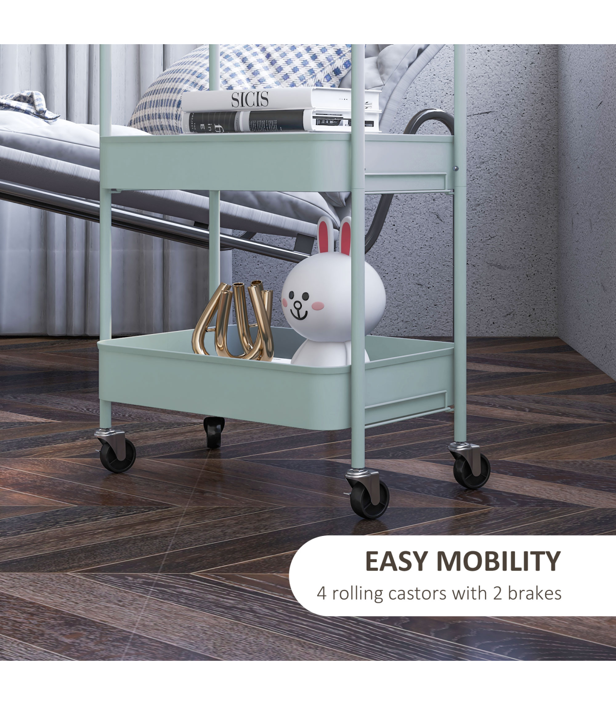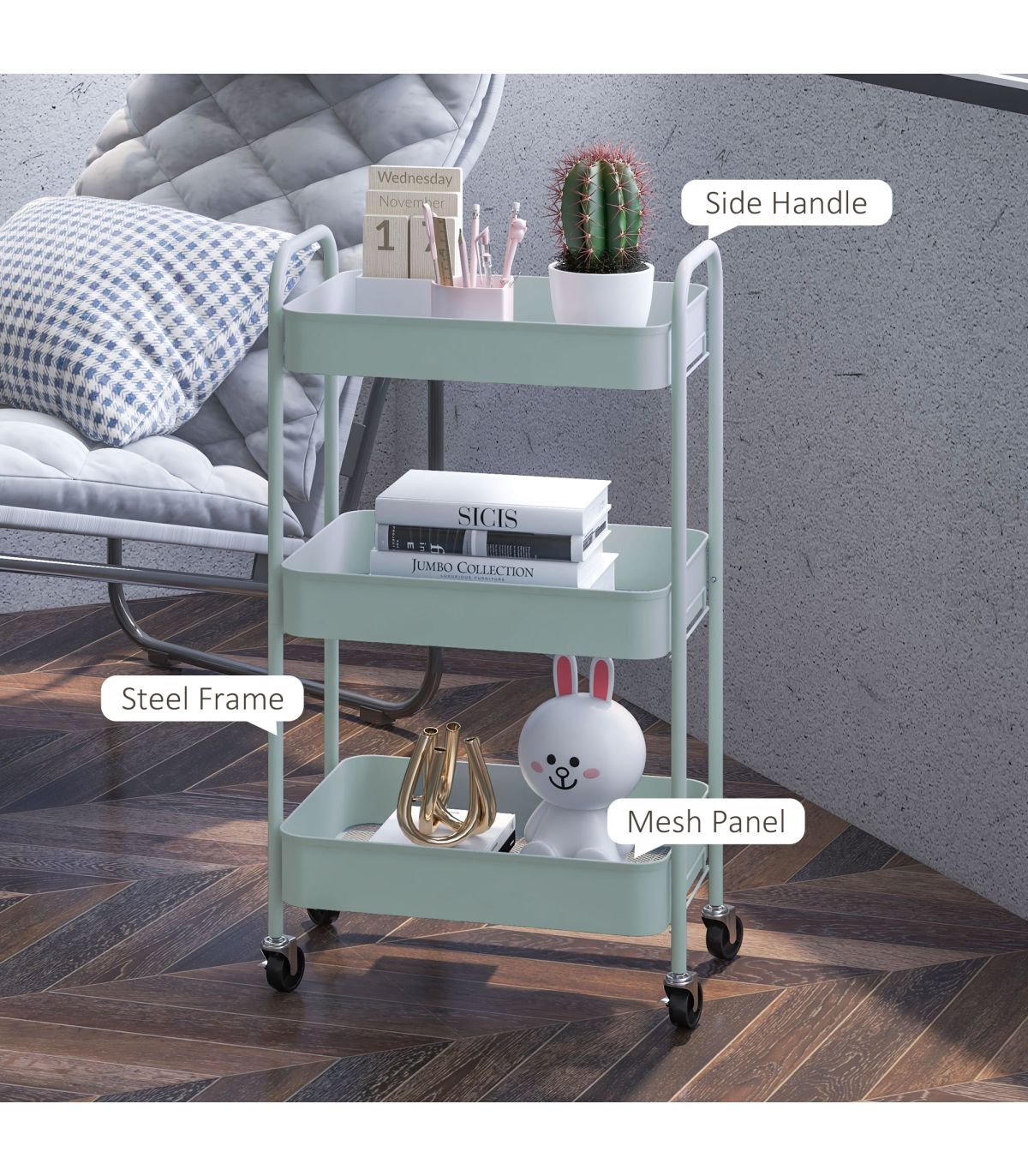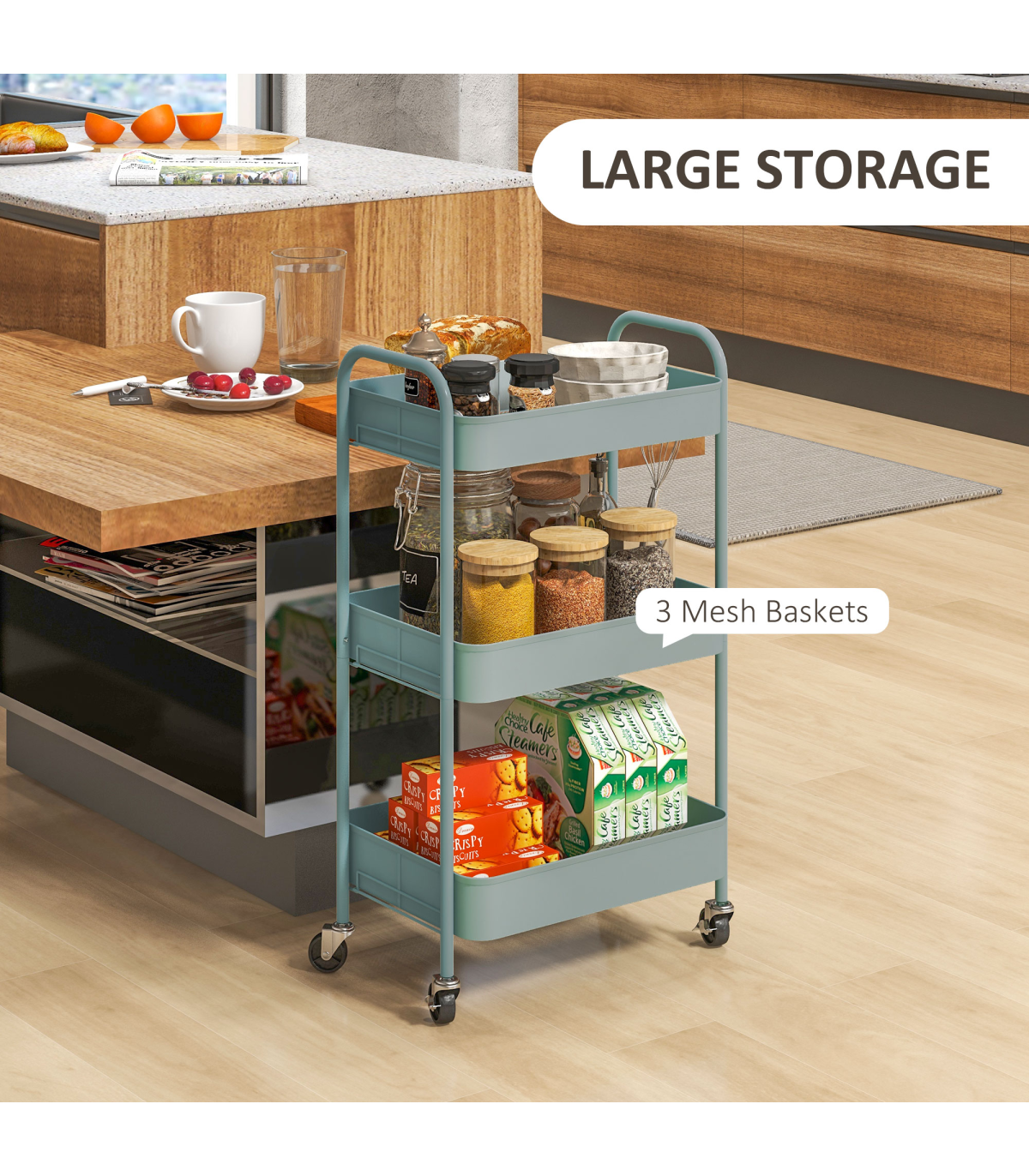 ● Steel structure is strong. Kitchen cart is suitable for everyday use