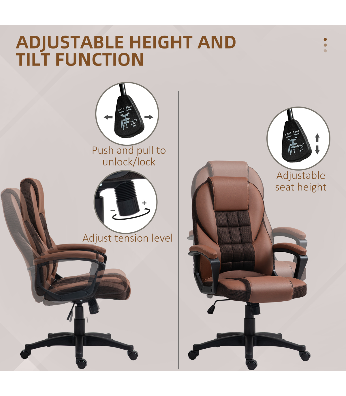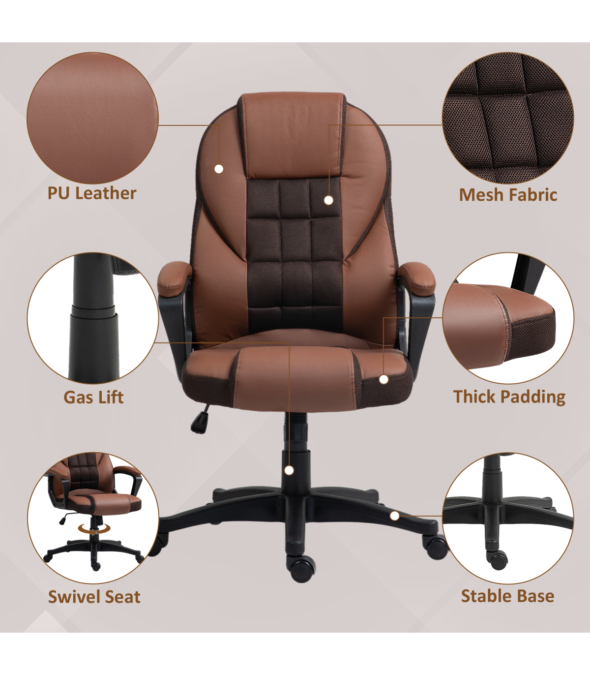 HOMCOM Executive Office Chair High Back Computer Chair with Armrests Brown