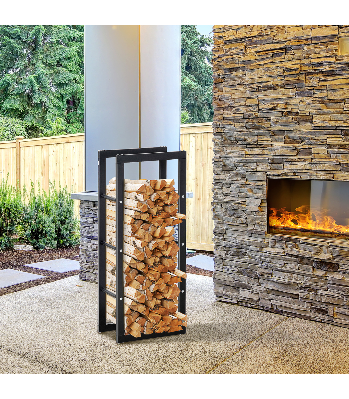 Metal Rust-Resistant Firewood Log Rack Black