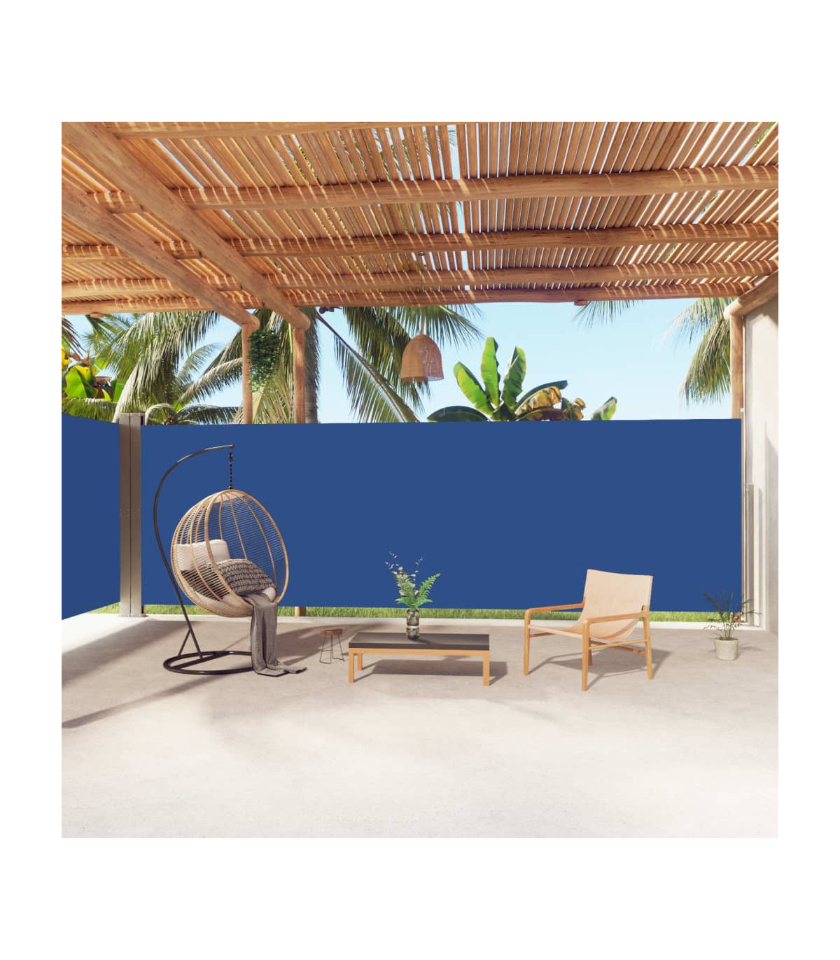 Our garden side awning, featuring a large screen, presents an effective way to deal with a constant wind and low-lying sun, while providing privacy. The simple yet stylish design makes it an ideal complement for your garden, patio, balcony, etc. The privacy screen has an automatic roll-back function and the width is adjustable to up to 600 cm. The outdoor screen is made of UV-proof, tear-resistant and water-resistant polyester fabric with a PU coating. Delivery also includes mounting accessories and 2 posts.