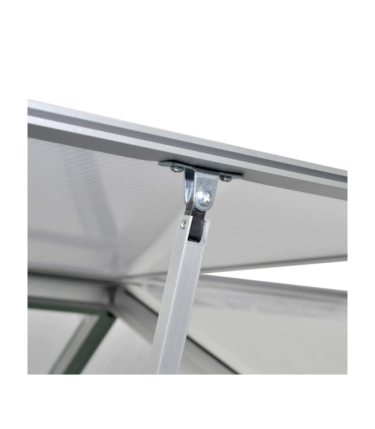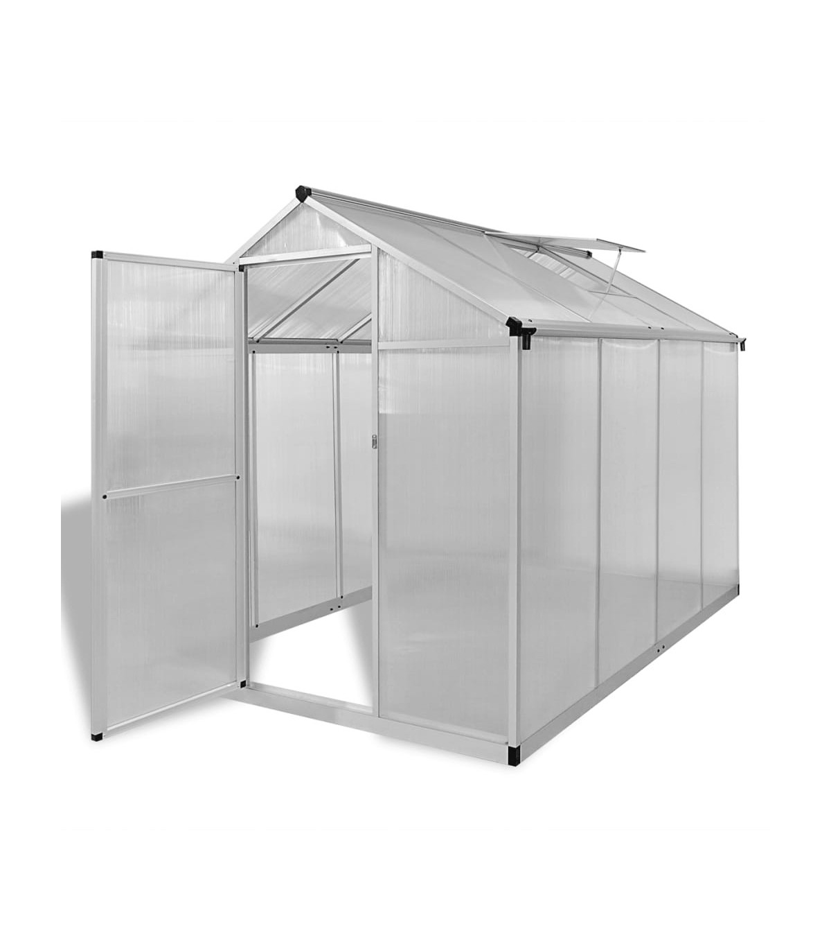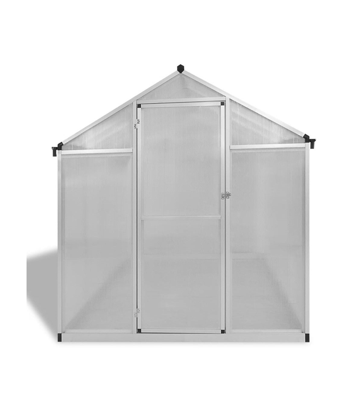 This spacious greenhouse has a total surface of 9,025 m2. It can accommodate a considerable number of plants, and will be a great solution for protecting your plants from the cold weather. Made of double-walled polycarbonate panels, this solid greenhouse is UV-resistant and thermally insulated. It can withstand temperatures from -20 ℃ up to 70 ℃. The greenhouse has a sturdy and maintenance-free aluminium construction with a base frame (made up of 4 strong profiles) for extra stability. The gutter system drains water effectively and two roof vents ensure optimum ventilation on hot days. With the required installation accessories included in delivery, assembly is easy. Please note the roof of our greenhouse cannot withstand heavy snowfall. Warning: The greenhouse is not a construction building or conservatory, intended for leisure purposes. It is an impermanent standalone agricultural installation intended for hobby gardening only.