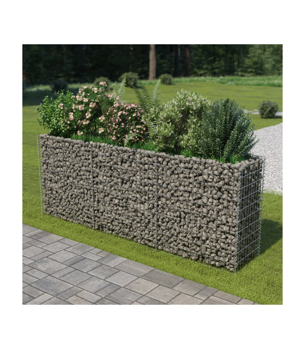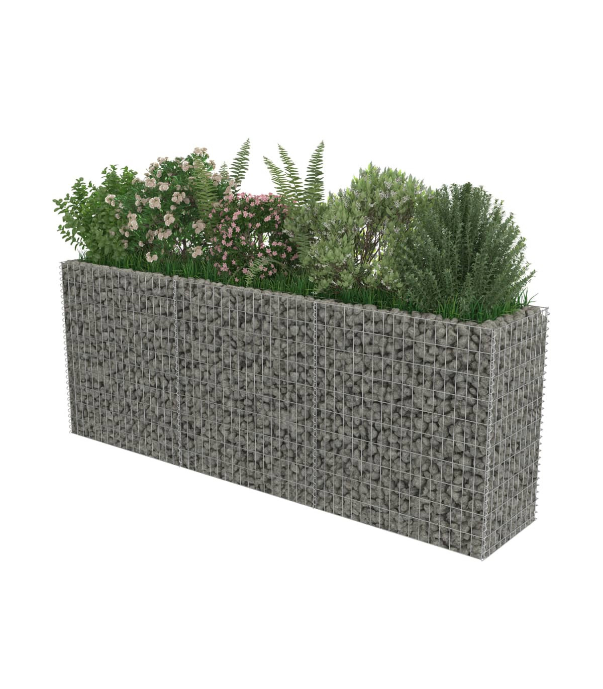 Our gabion raised bed presents a useful way of creating a sturdy yet stylish border for a flower or plant bed in your garden or on your patio. The sturdy gabion has been designed to be filled with rocks or gravel. Made of rustproof and weather-resistant galvanised steel, the raised garden bed is very stable and durable. The mesh grid is built by welding transverse and longitudinal wires at every intersection for extra stability. Please note that stones and plants are not included in delivery.