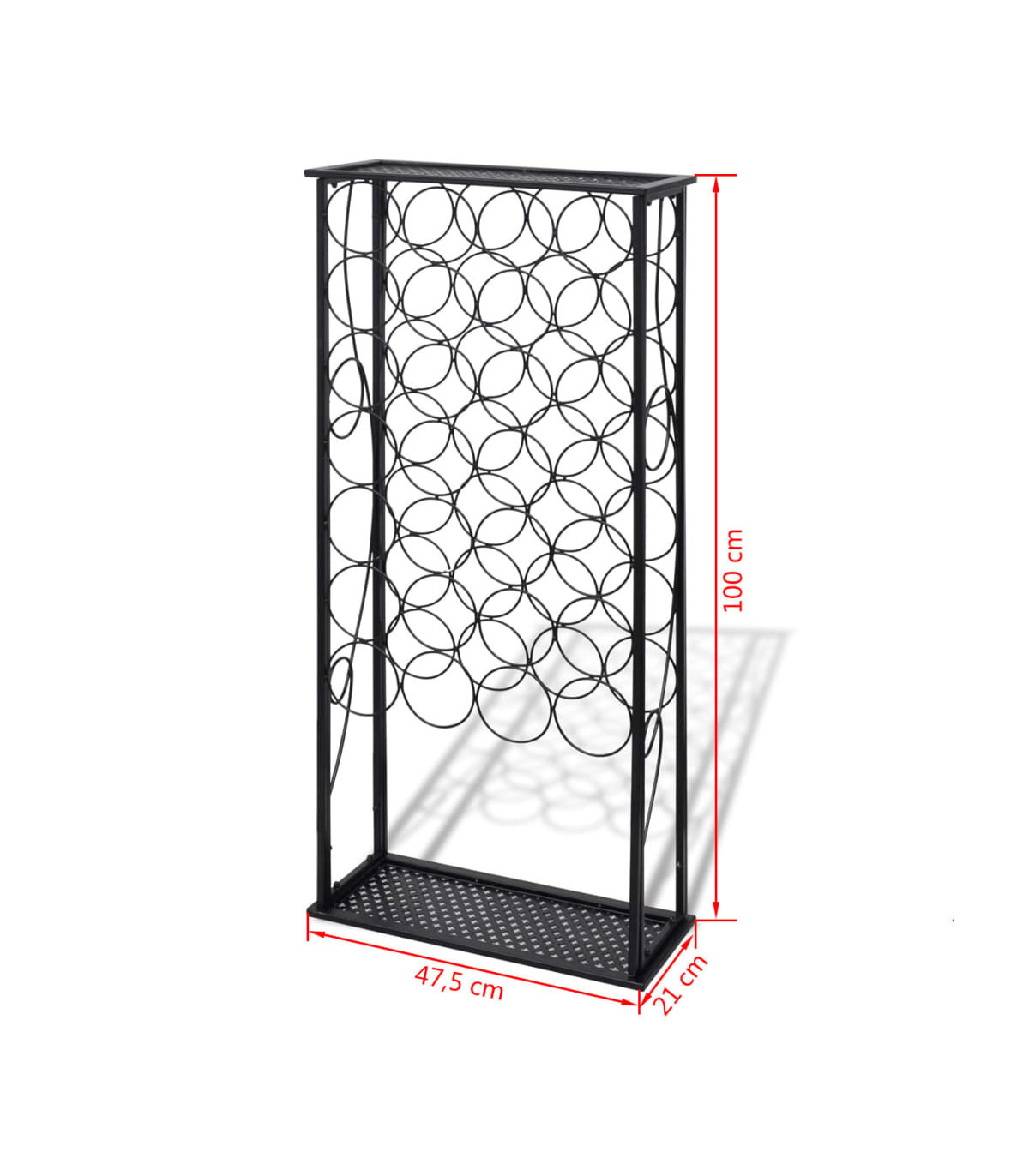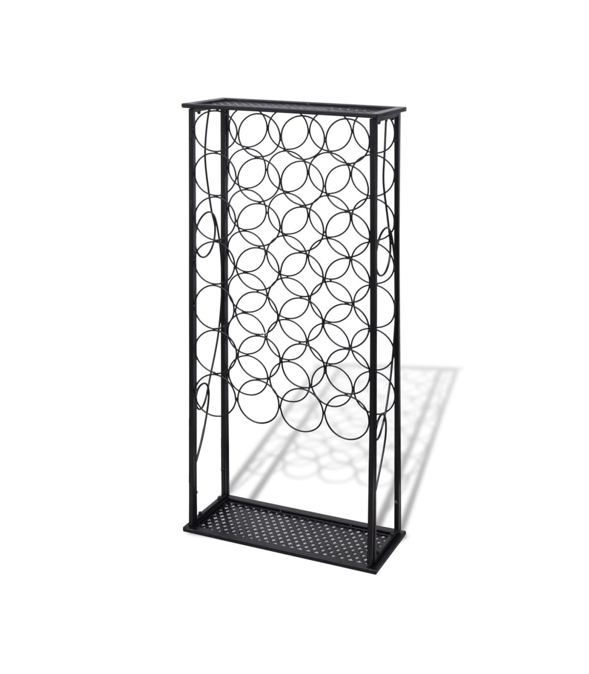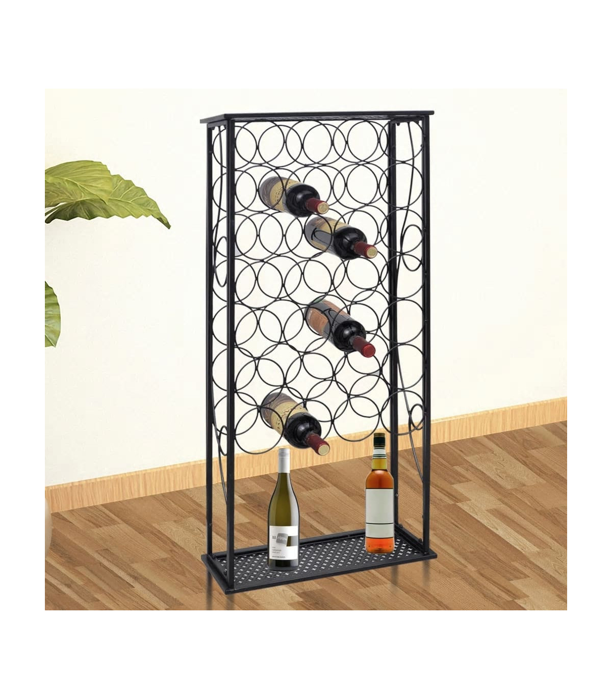 Store, age and display your wine in style with this wine rack! Large capacity: This wine holder can hold up to 27 bottles, effectively maximising storage space and keeping the area tidy. Stable construction: This wine bottle holder is made of sturdy wrought iron with a black powder-coated finish to resist oxidation and rust. The included wall fixings prevent the wine stand from swaying or tilting, making it suitable for years of use. Suitable for many places: Featuring a simple and elegant design, this wine storage rack is perfect for use in bars, wine cellars, kitchens, restaurants, and more. Warning:To prevent it being overturned, this product must be used with the provided wall attachment device.
