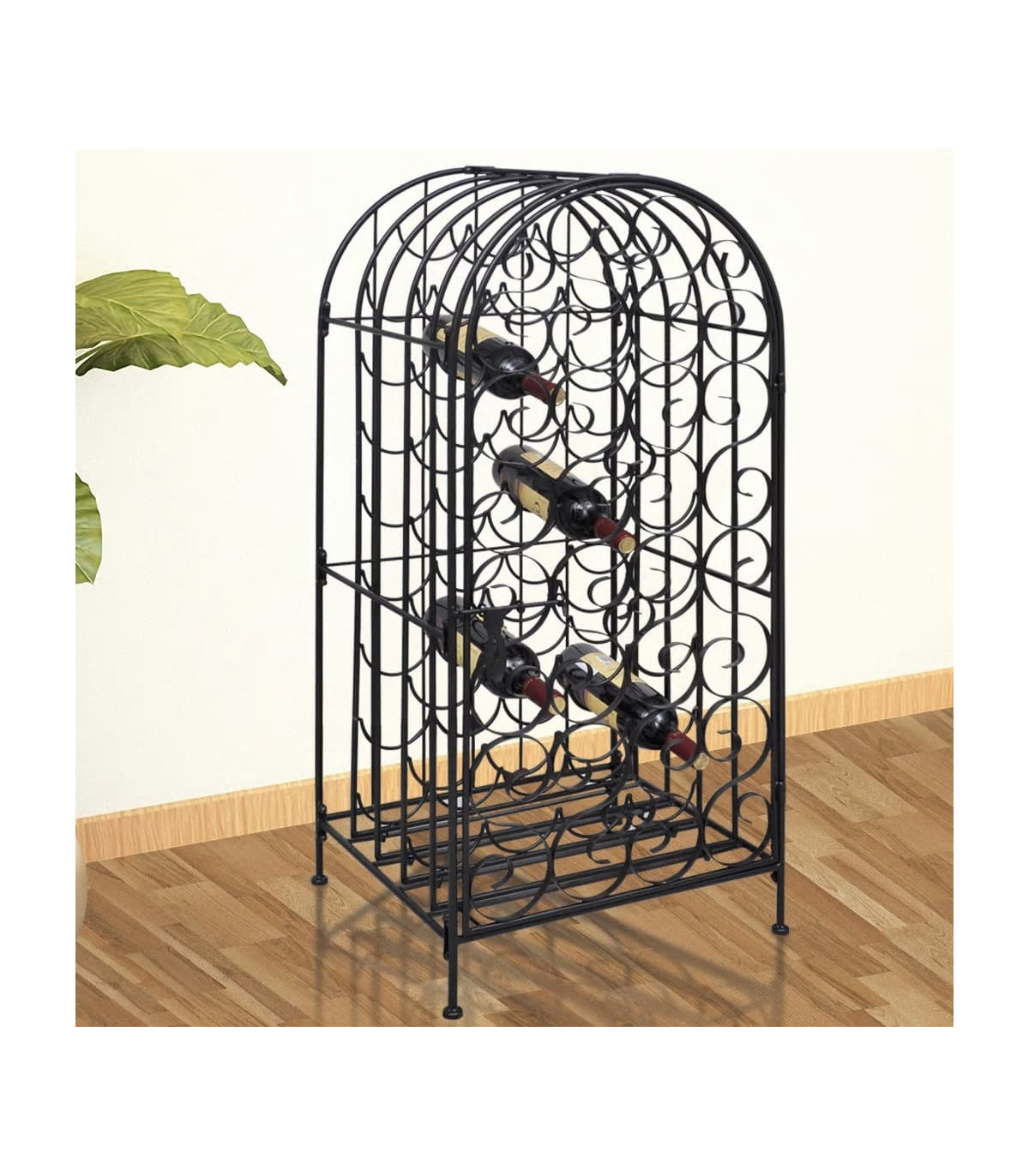 Store, age and display your wine in style with this wine rack! Large capacity: This wine holder can hold up to 27 bottles, effectively maximising storage space and keeping the area tidy. Stable construction: This wine bottle holder is made of sturdy wrought iron with a black powder-coated finish to resist oxidation and rust. The included wall fixings prevent the wine stand from swaying or tilting, making it suitable for years of use. Suitable for many places: Featuring a simple and elegant design, this wine storage rack is perfect for use in bars, wine cellars, kitchens, restaurants, and more. Warning:To prevent it being overturned, this product must be used with the provided wall attachment device.