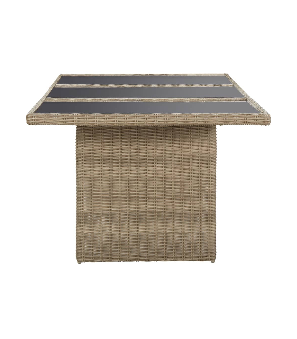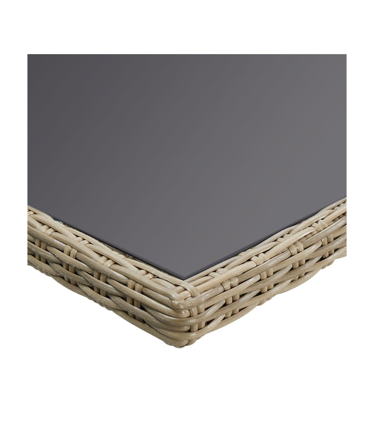 This outdoor dining table is specially designed for your garden or patio! The garden table is made of PE rattan, making it weather-resistant and durable. The steel frame and glass tabletop make the table sturdy and stable. Thanks to the lightweight construction, the table is also easy to move. Note: We recommend covering the table during the rain, snow and frost to prolong its life.
