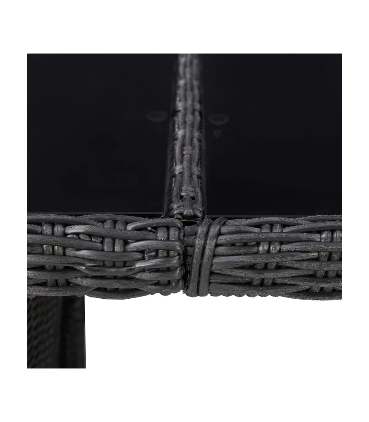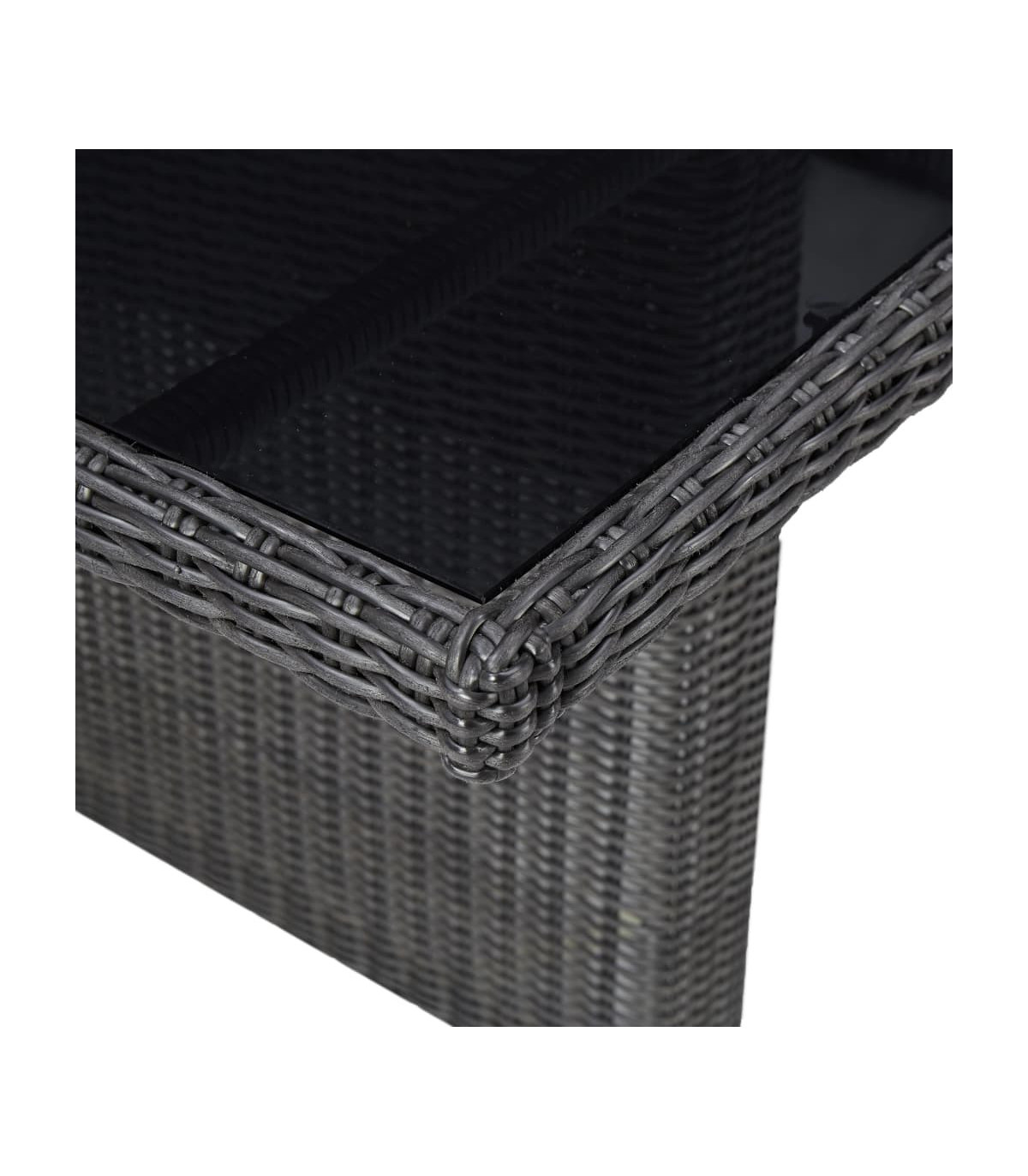 - Material: PE rattan, glass, powder-coated steel